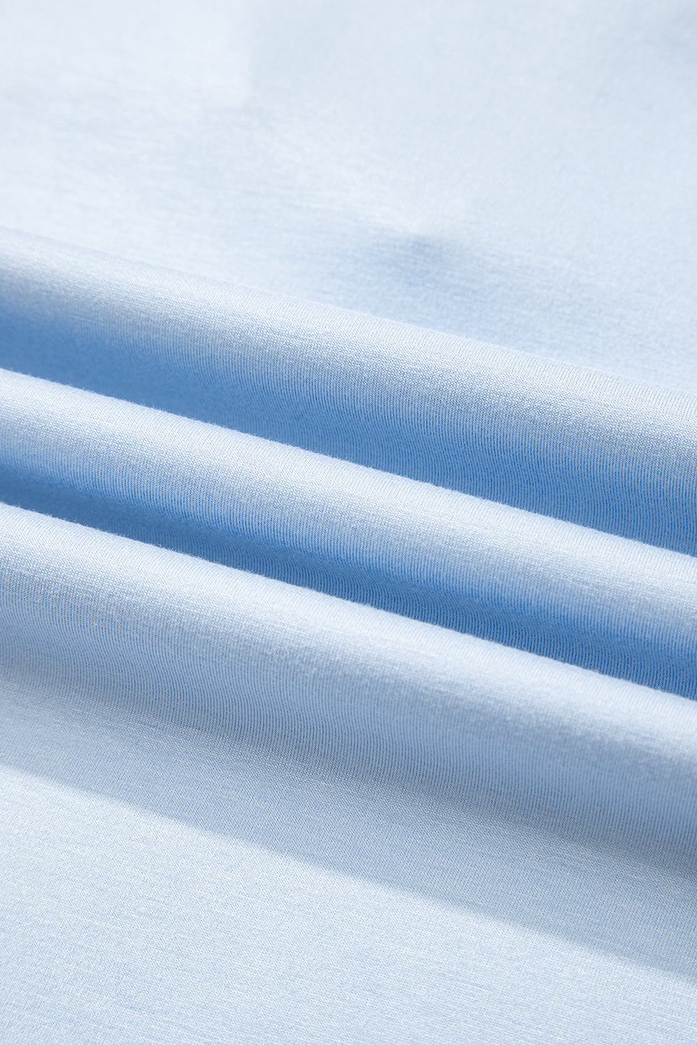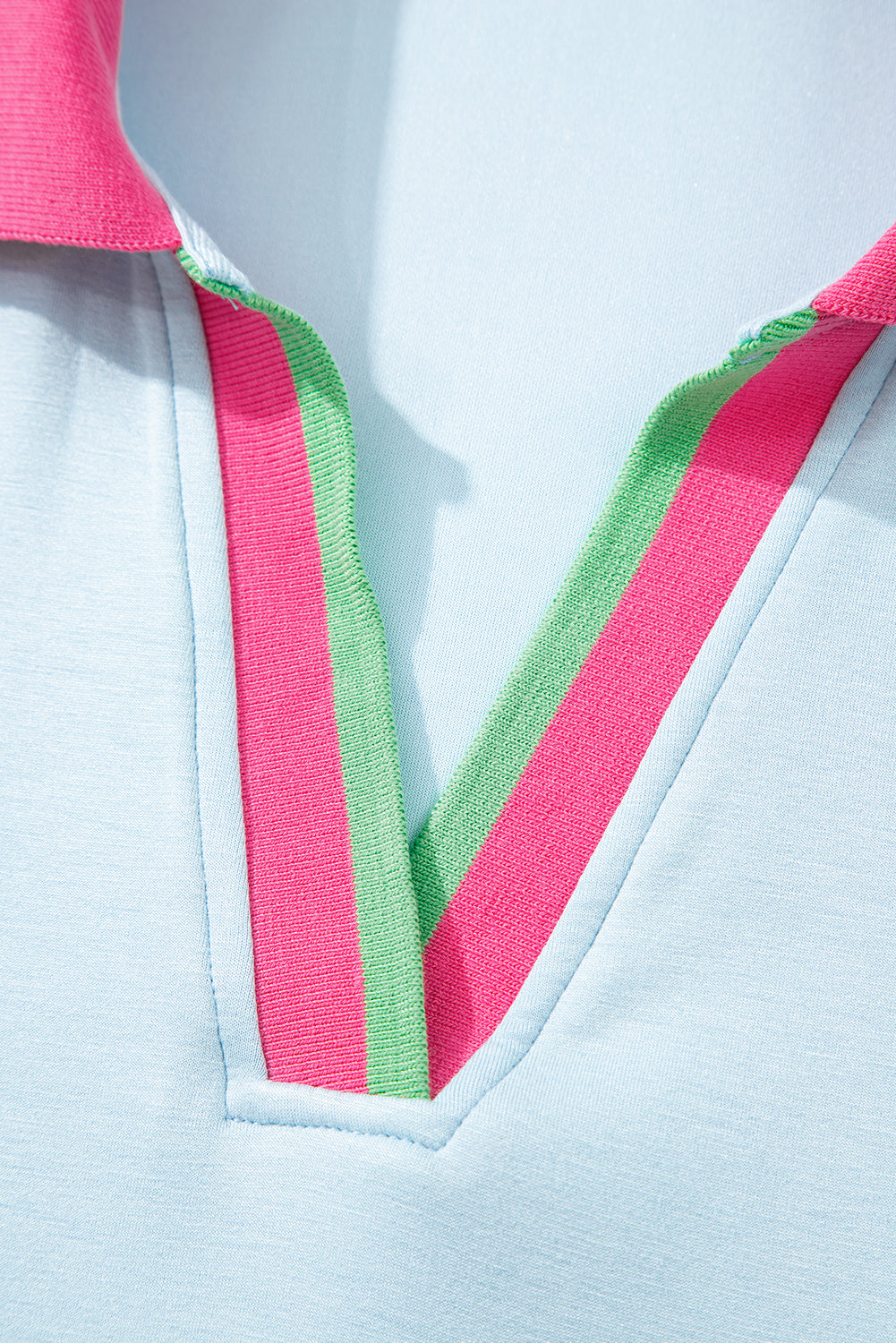 Beau Blue Color Contrast Ruffled Sleeve Collared V Neck Blouse