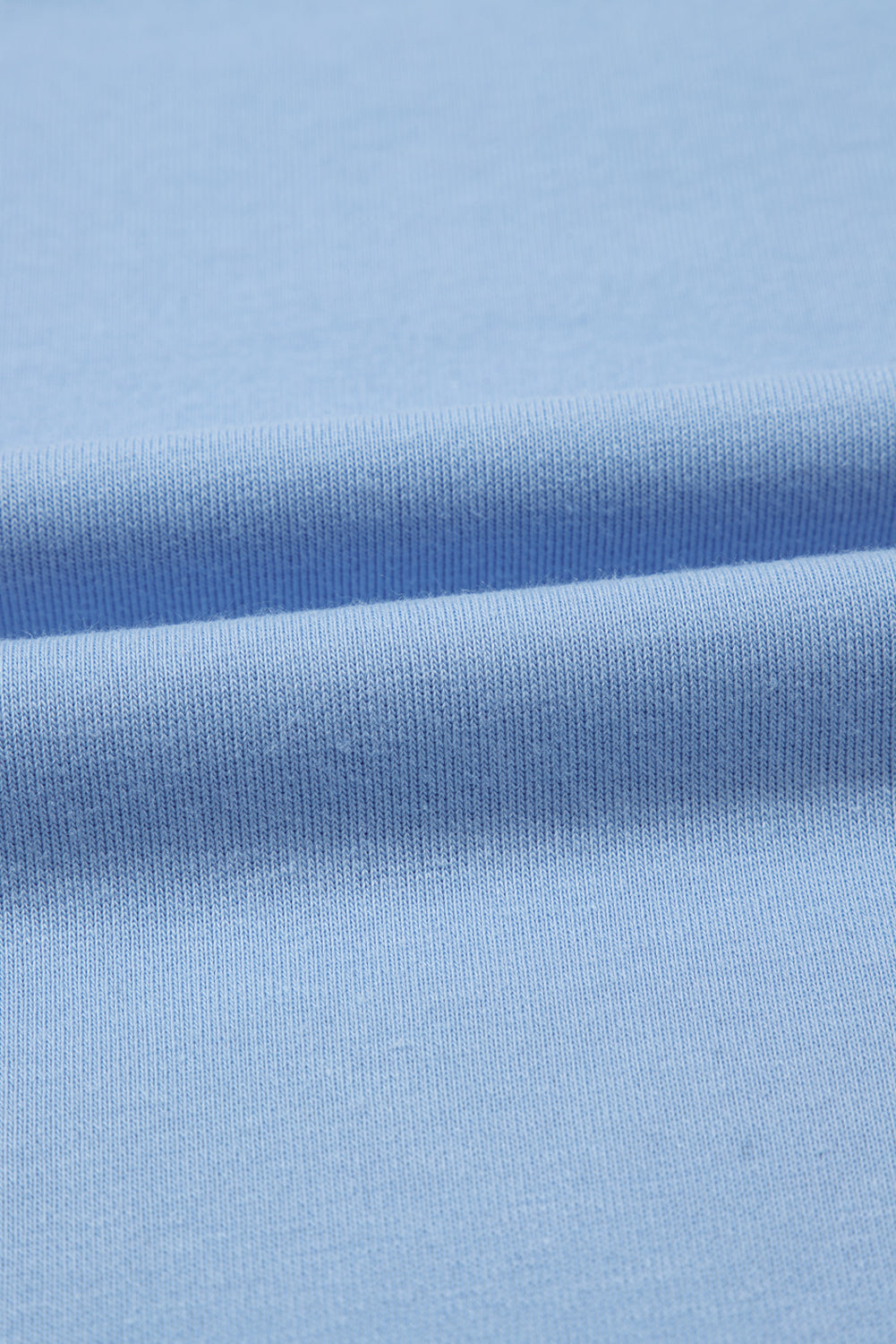 Beau Blue Eyelet Flower Embroidered Puff Short Sleeve Patchwork Crew Neck Blouse