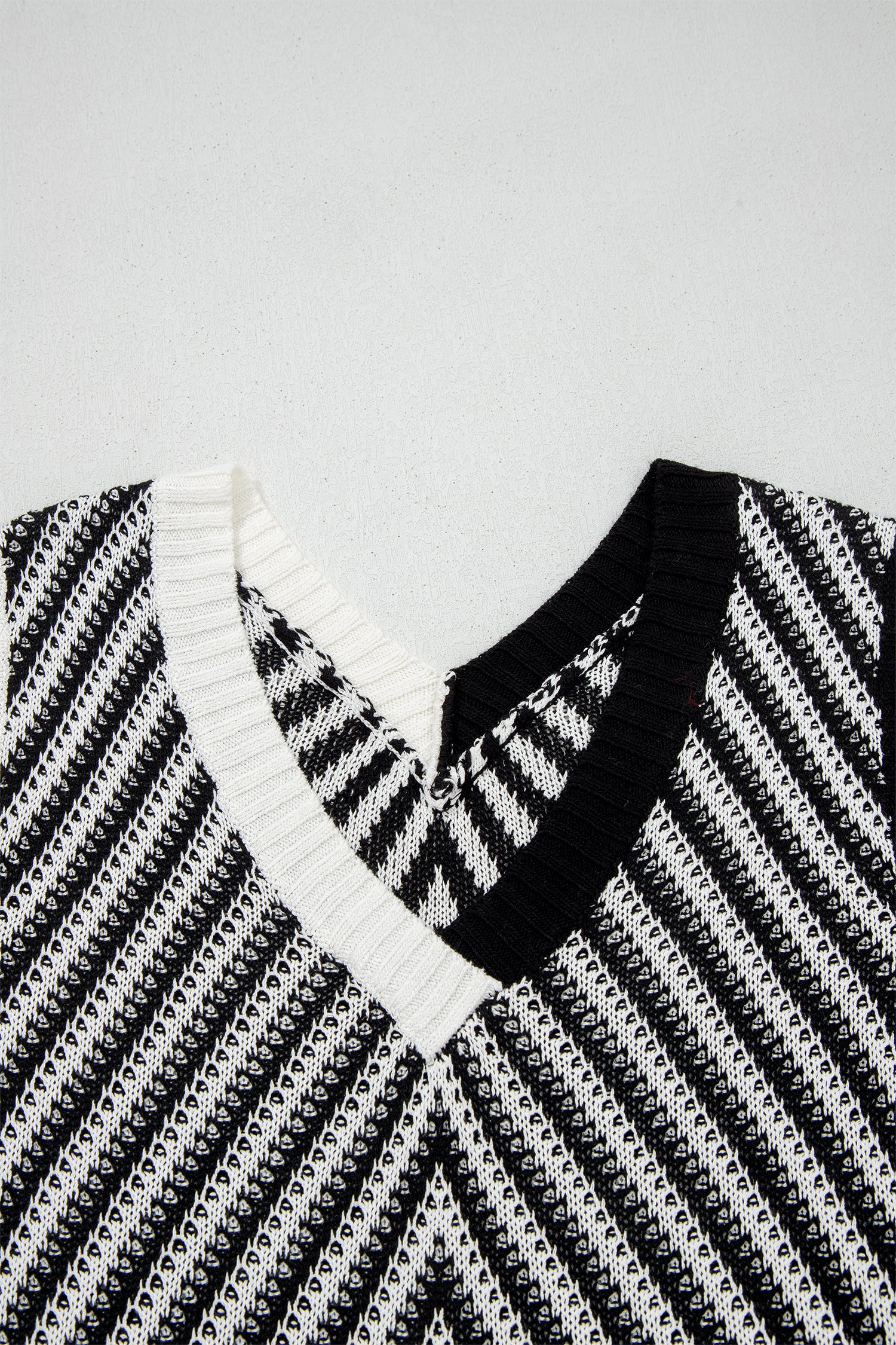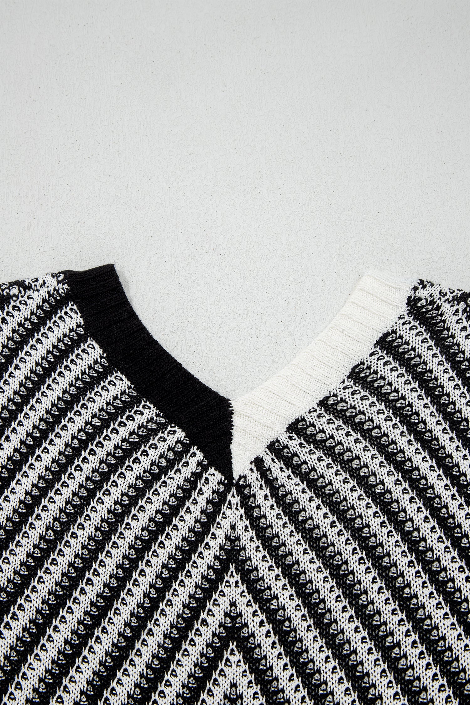 Black Contrast Chevron Knit V Neck Sweater Vest