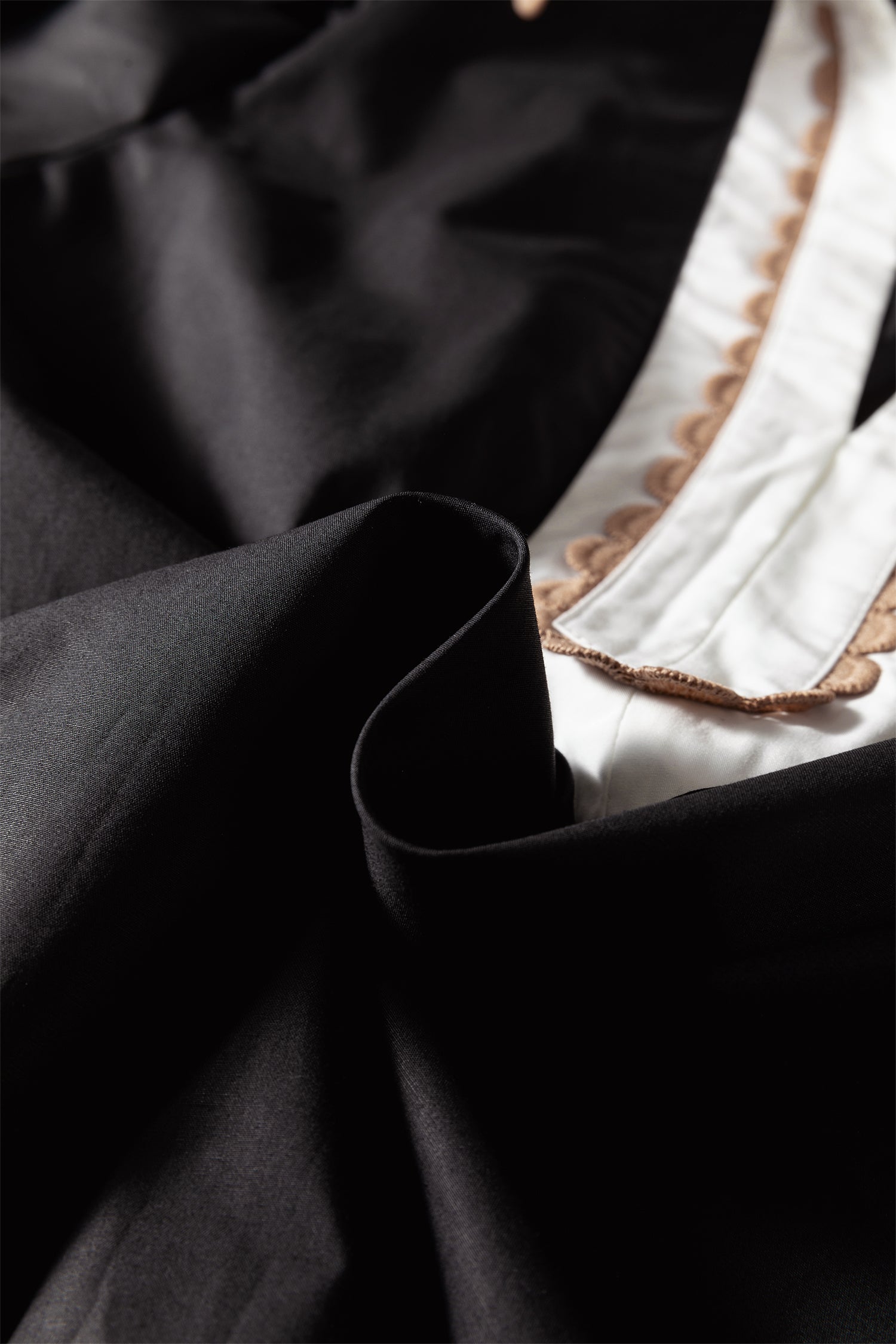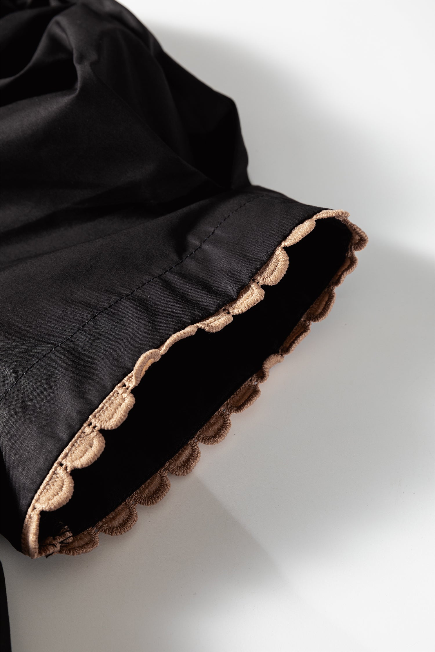 Black Ricrac Trim Color Block Patchwork Shirt Collar Short Sleeve Blouse