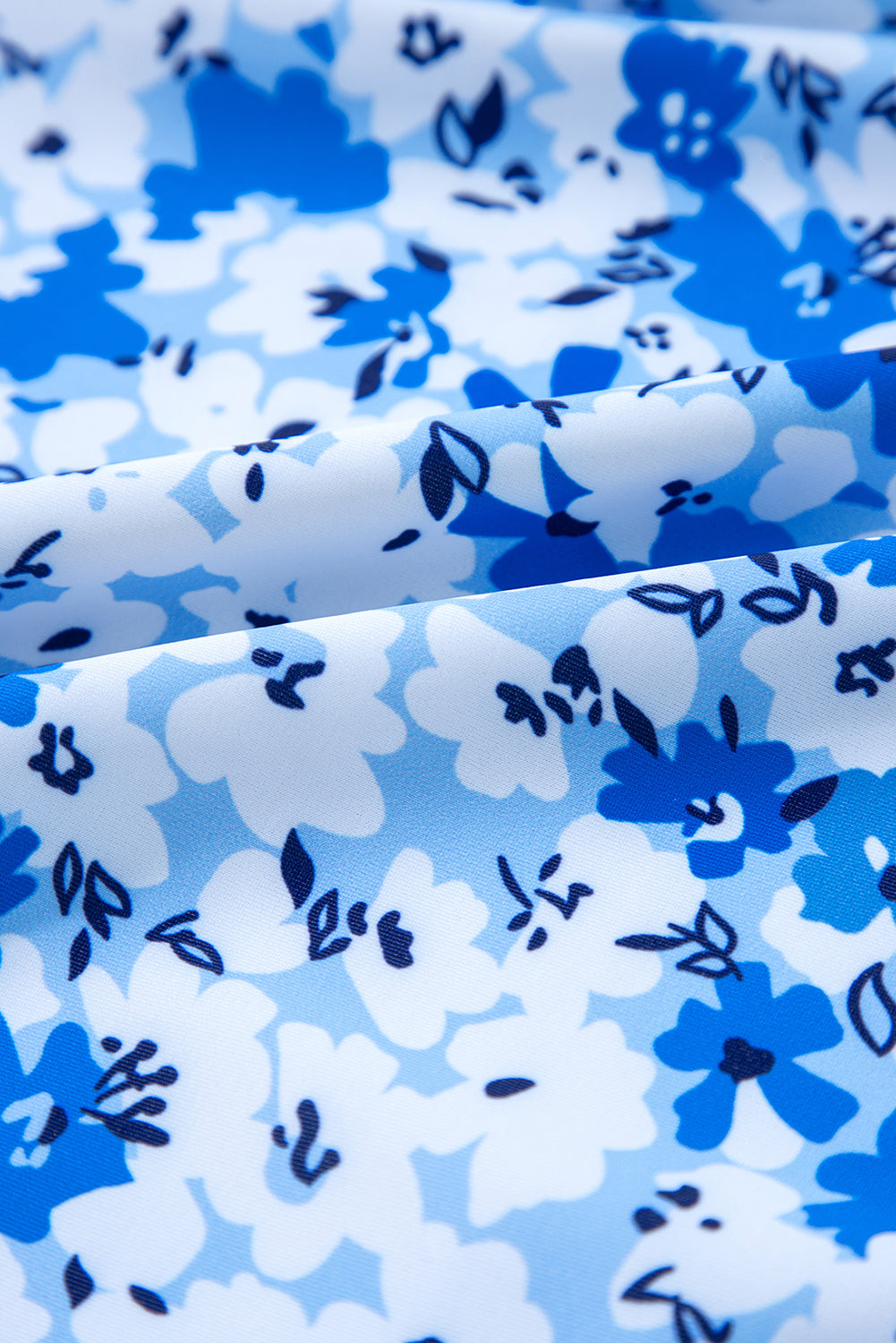 Blue Floral Ruffled Strap Lace-up Hollow Out One Piece Swimsuit