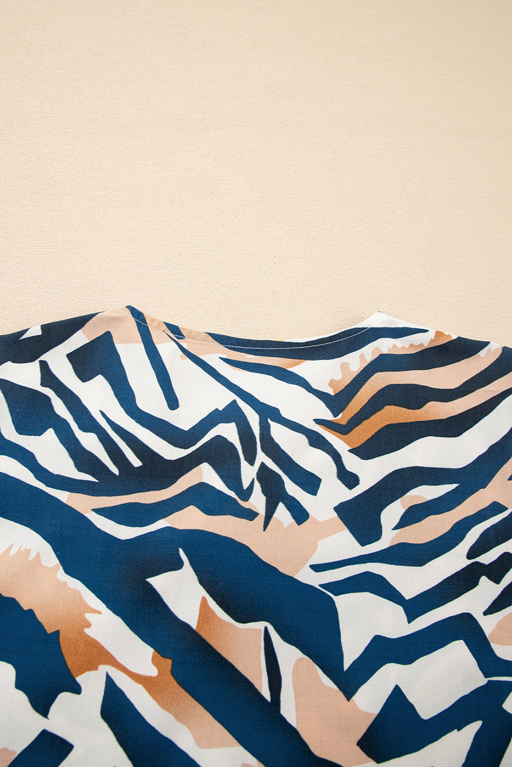 Blue Zebra Print Tied Front Puff Sleeve Top