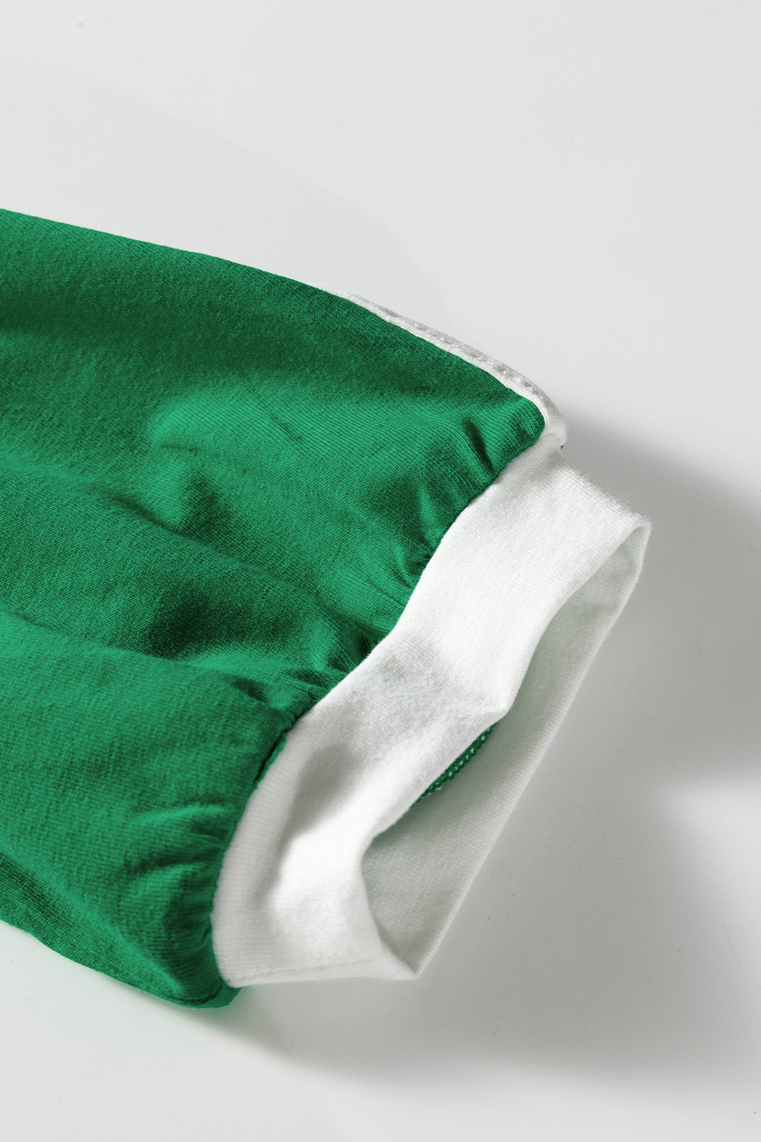 Bright Green Varsity Striped Accent Contrast Crew Neck Long Sleeve T Shirt