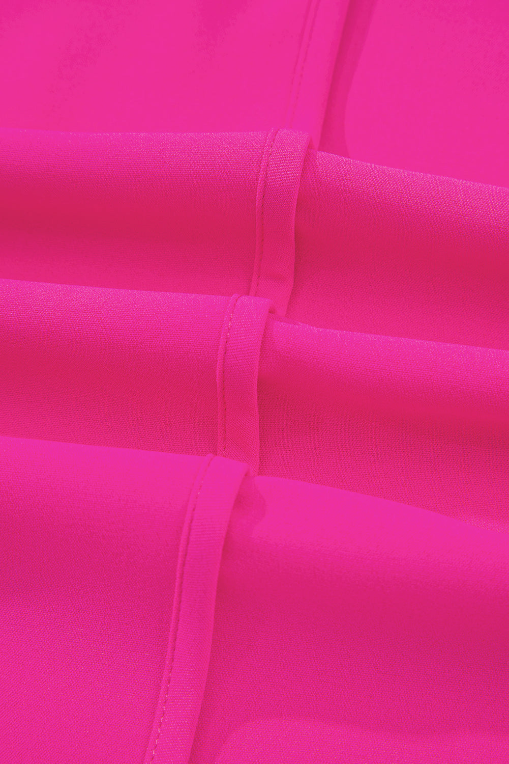 Bright Pink Seamed Back High Low Hem V Neck Cuffed Sleeve Plus Size Tee