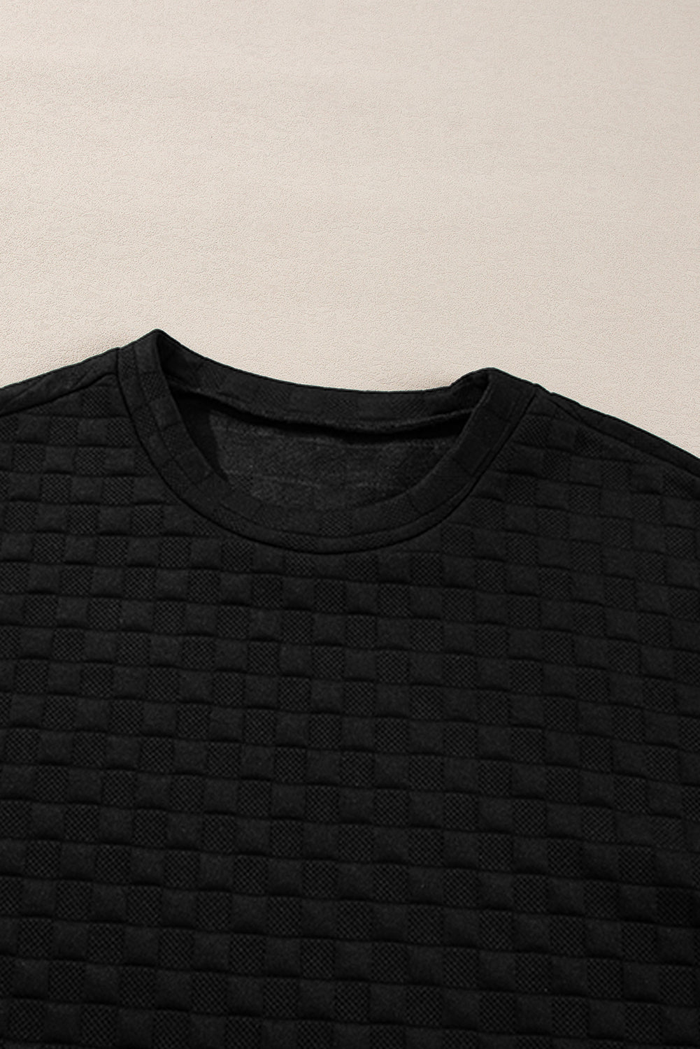 Color black Checkered Textured Split Pullover Top and Pants Set