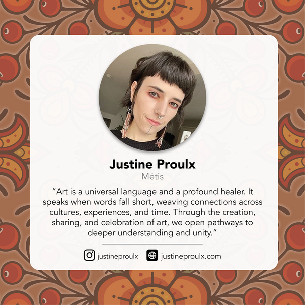 Elevate your accessory collection with this stunning Eco Scarf showcasing authentic prairie beadwork design by Métis artist Justine Proulx. Made entirely from recycled plastic bottles, this eco-friendly scarf delivers both style and sustainability without compromise. The plush, textured weave displays rich, vibrant hues that celebrate Indigenous artistry while reducing environmental impact. At 27.5" x 71", this versatile piece works beautifully as a wrap, headscarf, or statement accessory. Thoughtfully packaged with header card and hang tag, it's perfect for conscious consumers who value ethical fashion and cultural appreciation.