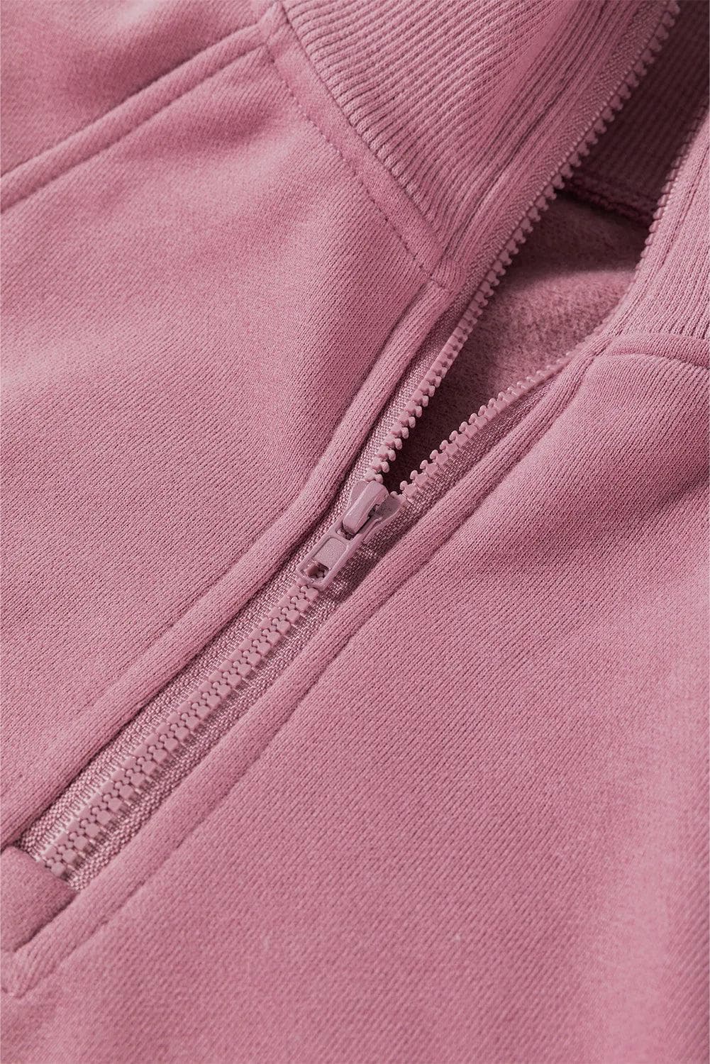 Fushia Zipped Neck Pullover Drop Shoulder Sweatshirt