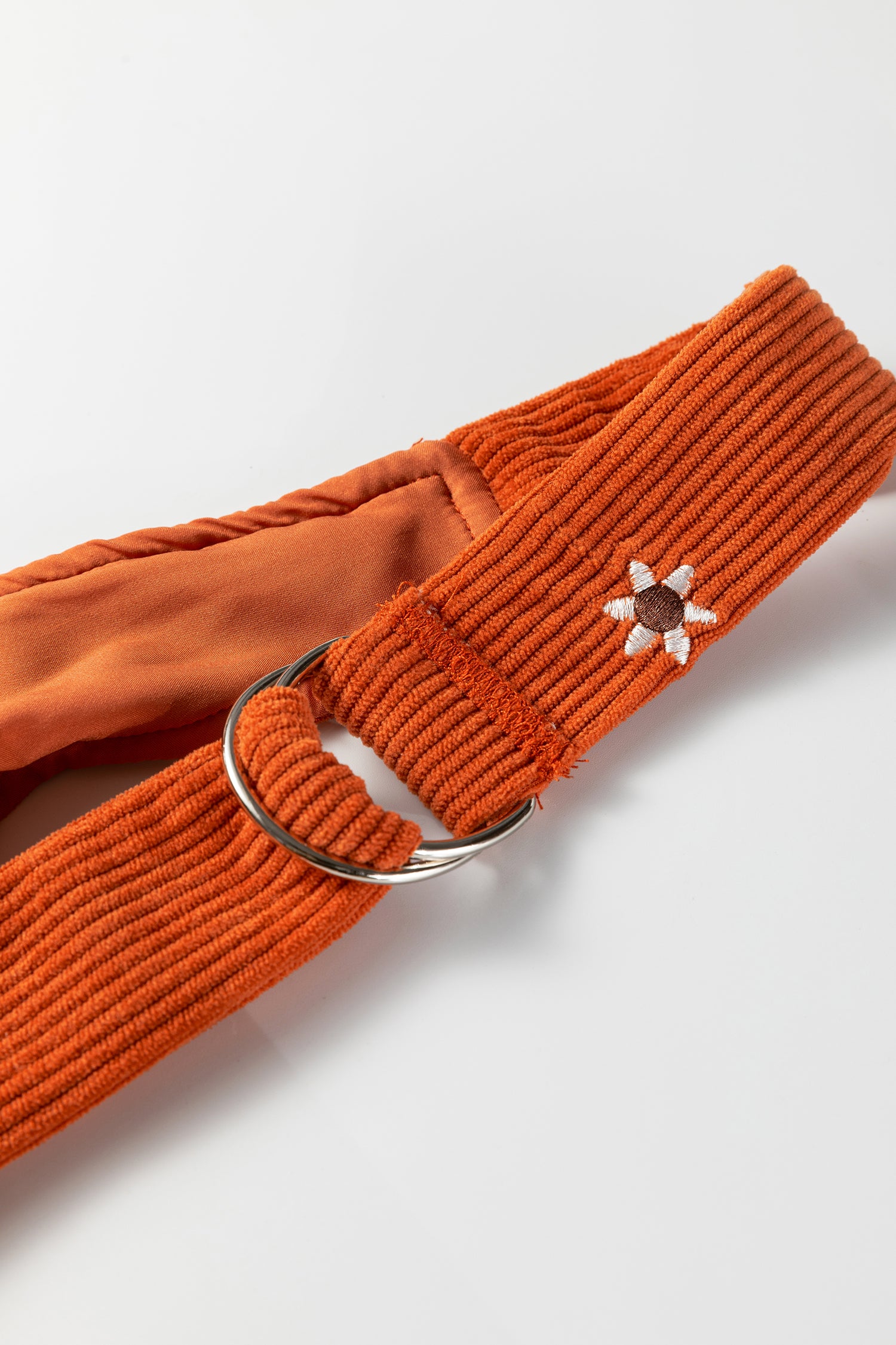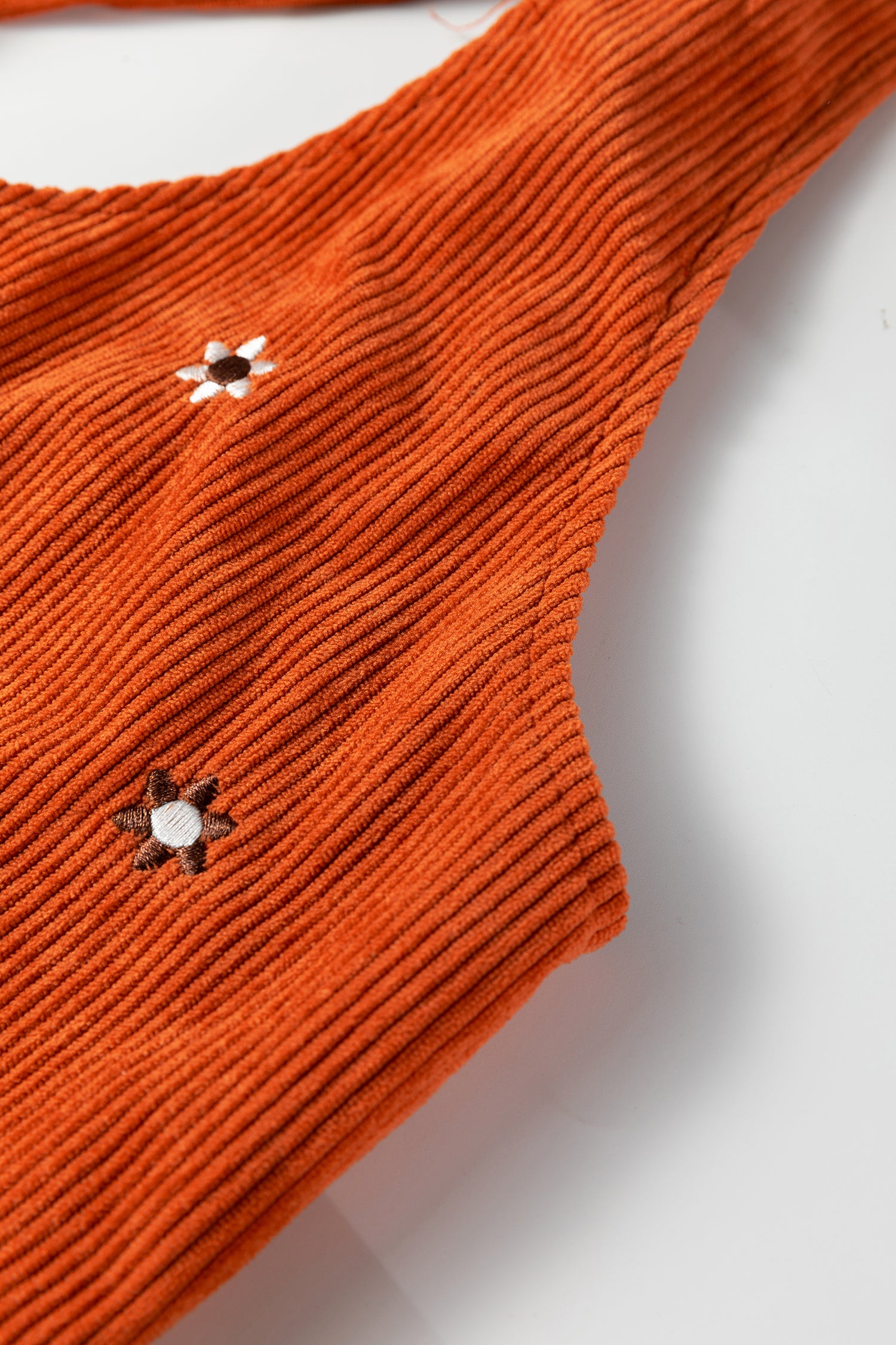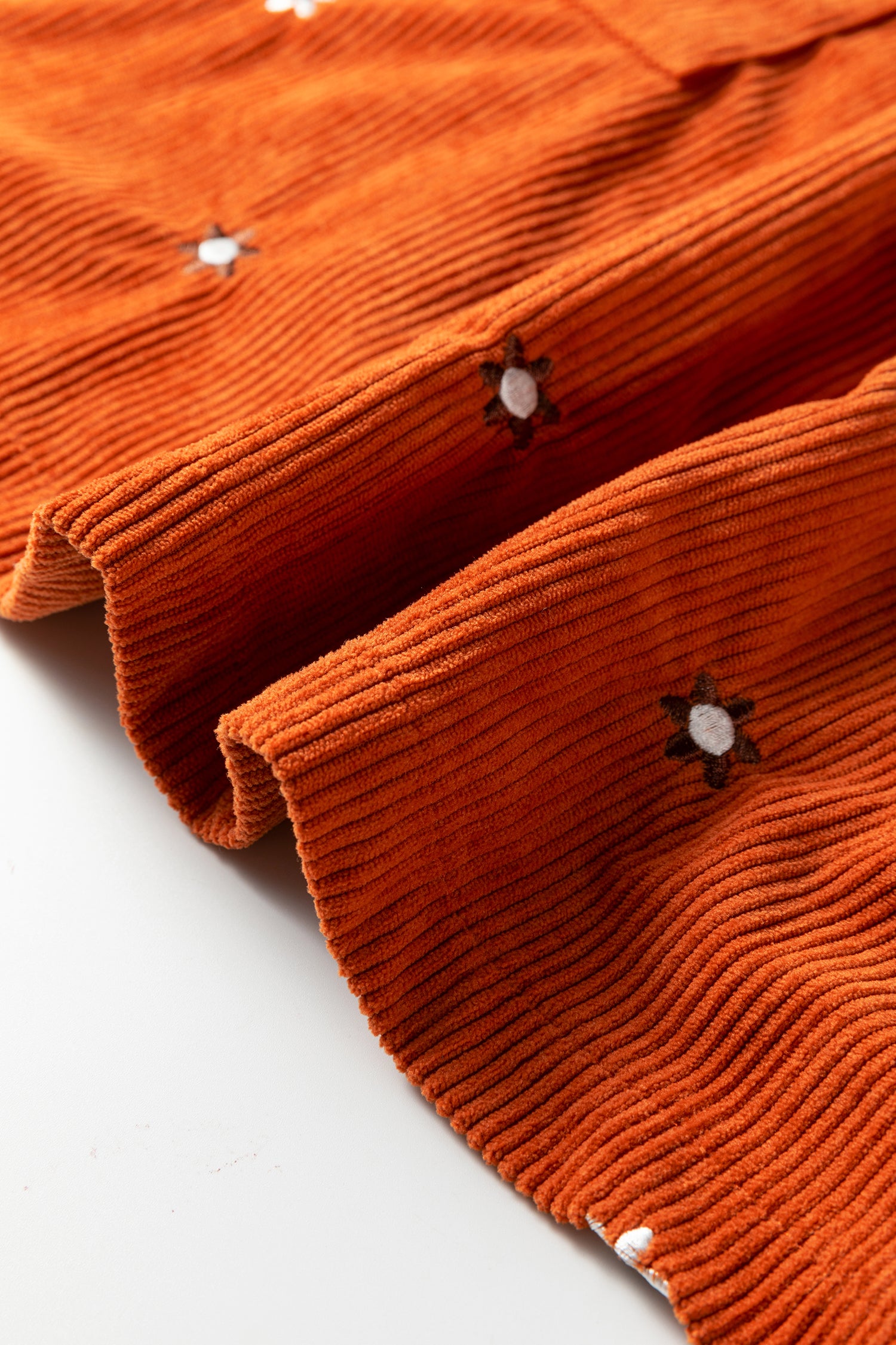 Gold Flame Flower Embroidered Corduroy Overall Mini Dress