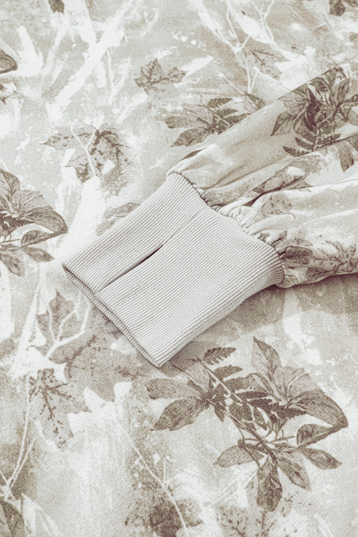 Gray Leafy Camo Print Exposed Seam Patchwork Baggy Slit Sweatshirt