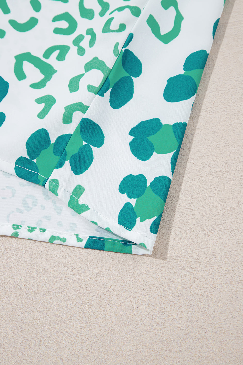 Green Mixed Leopard Print V Neck Short Sleeve Blouse