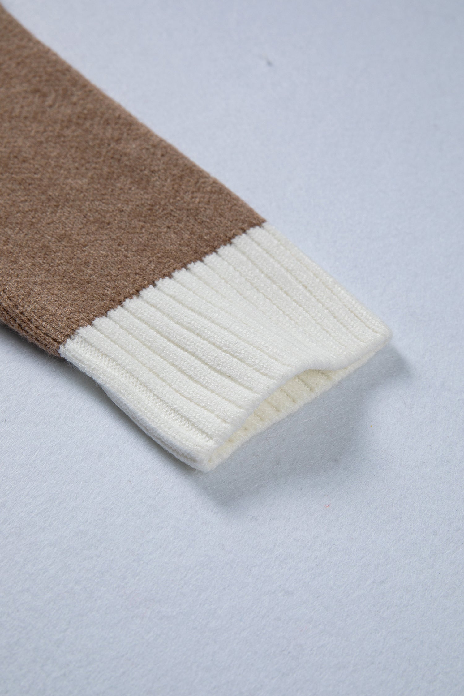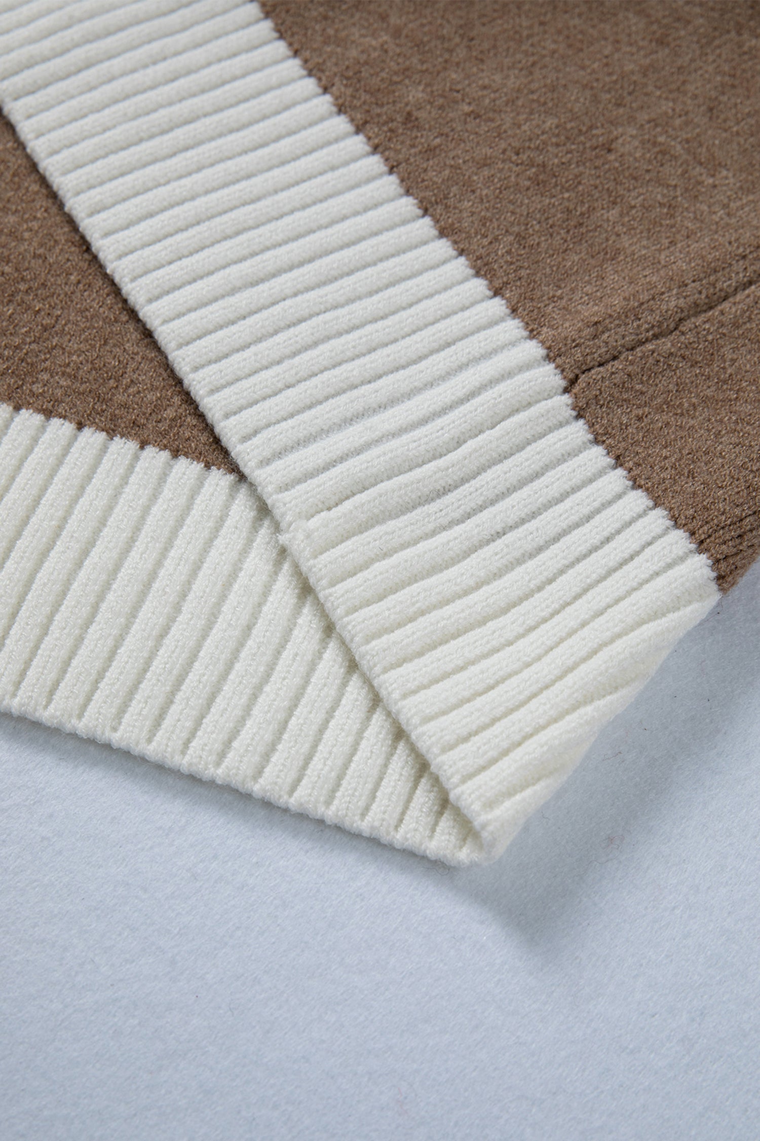Khaki Houndstooth Color Block V Neck Raw Edge Button Front Cardigan