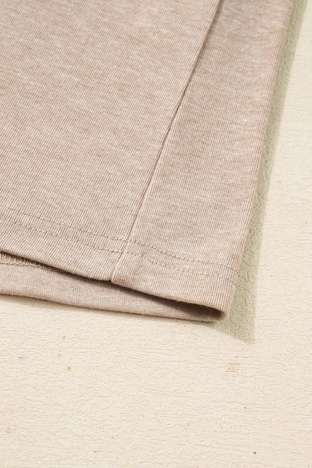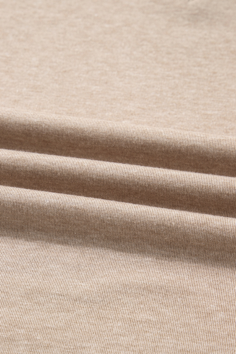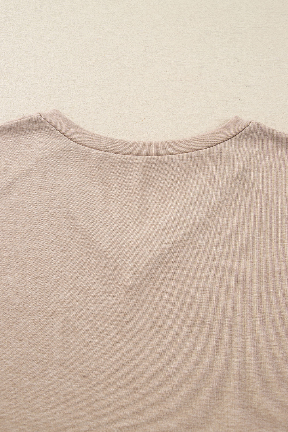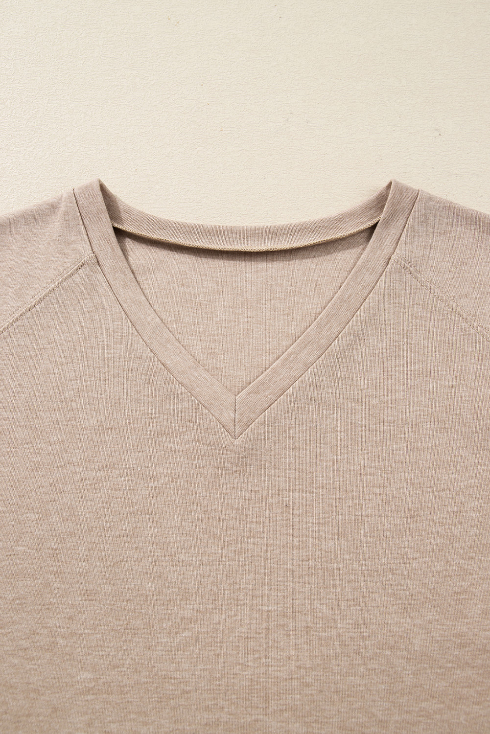 Oatmeal V Neck Contrast Lace Patchwork Long Sleeve Top
