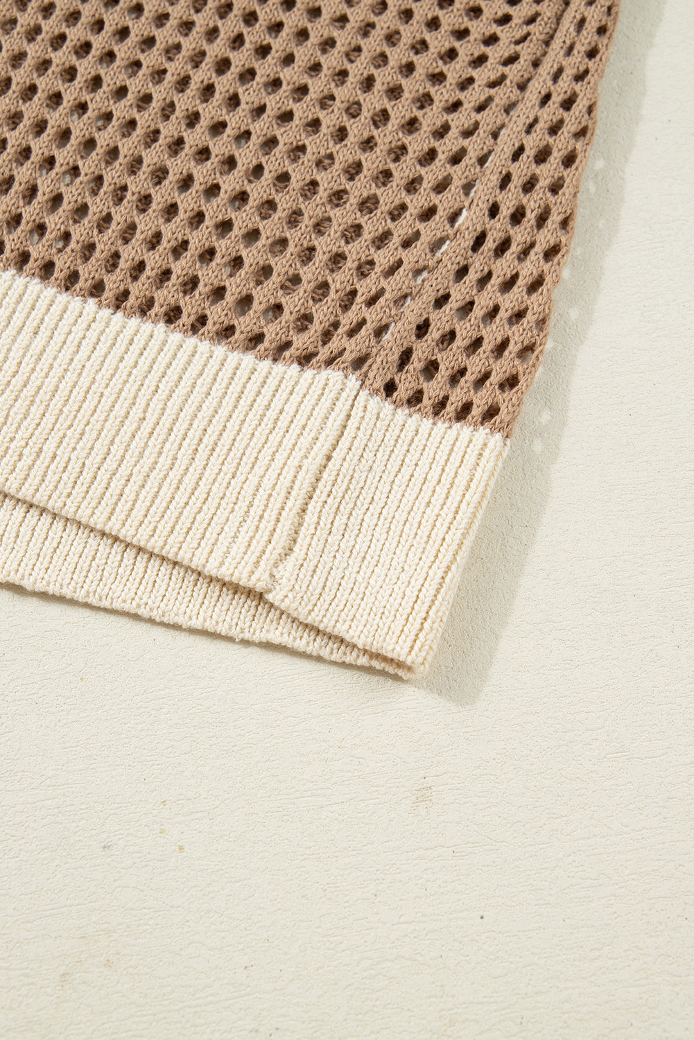 - This open knit sweater is a breathable piece that combines effortless style with versatility.