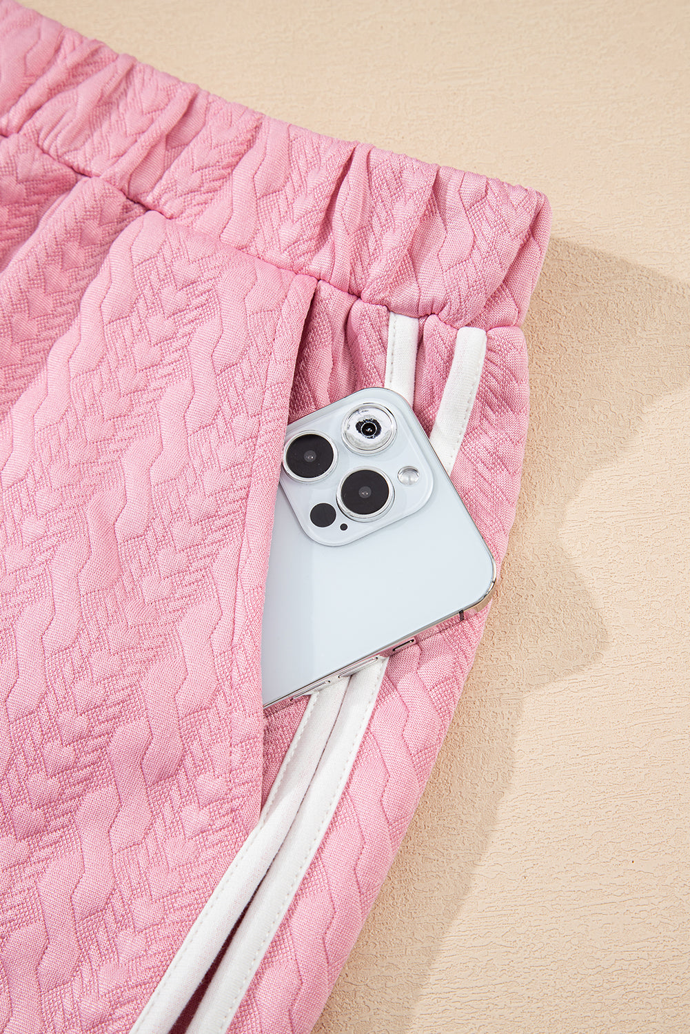 Pink Contrast Trim Textured Crewneck Tee and Pocketed Skirt Set