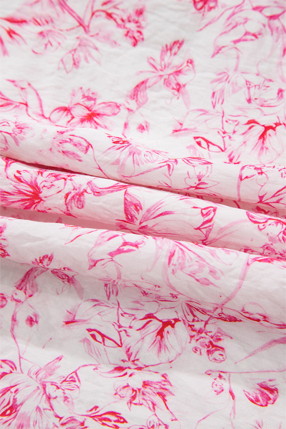Pink Floral Ruffled Short Sleeve Bow Back Square Neck Blouse