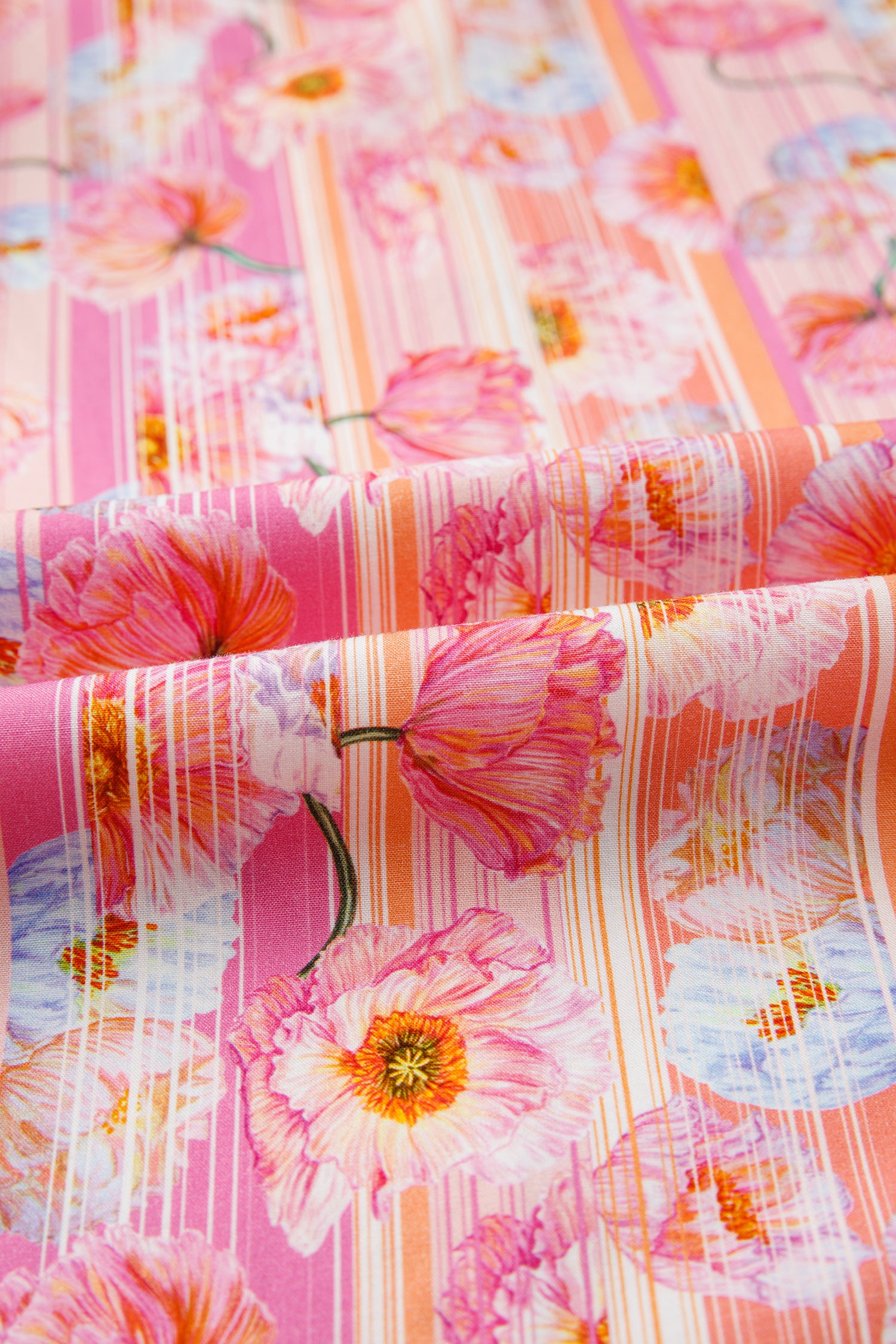 Pink Poppy Flower Striped Print Color Block Trim V Neck Short Sleeve Blouse