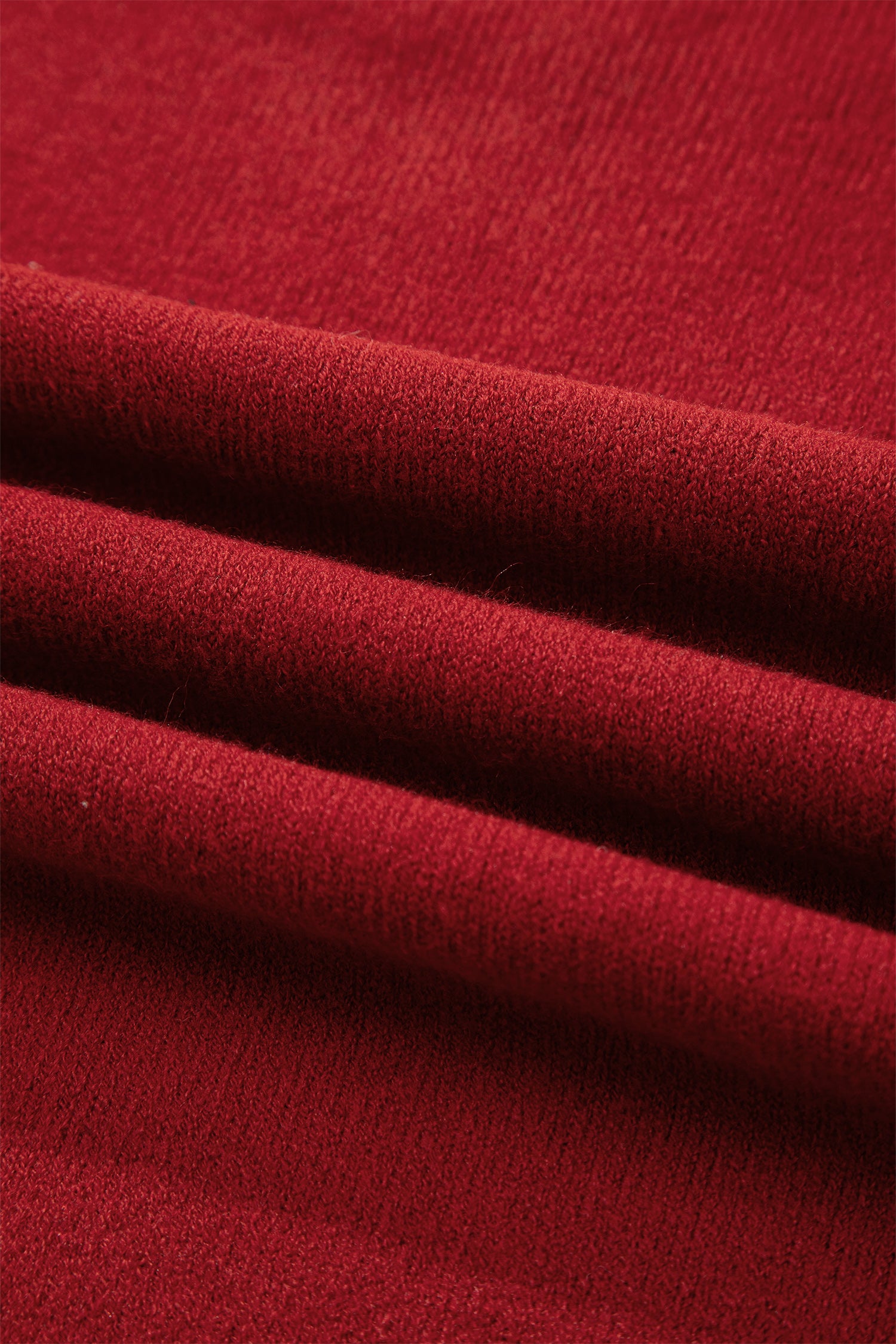 Racing Red Leopard Bow Decor Split Cuff Contrast Trim Sweater