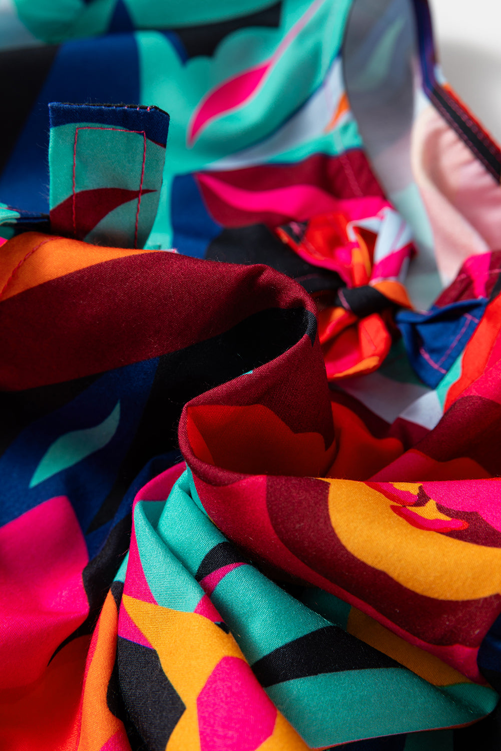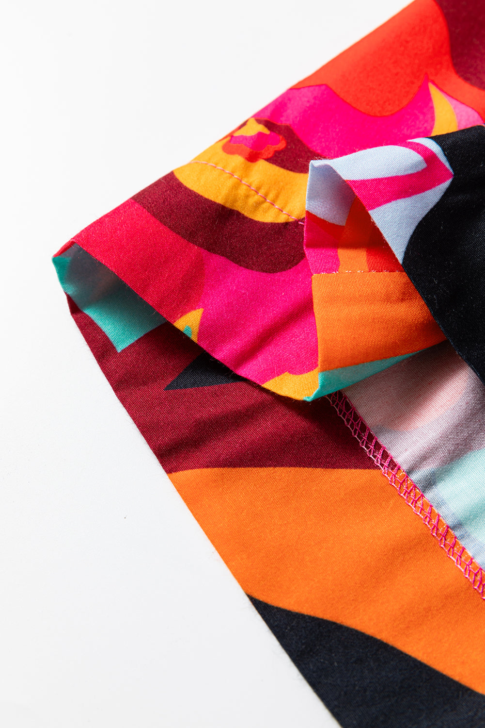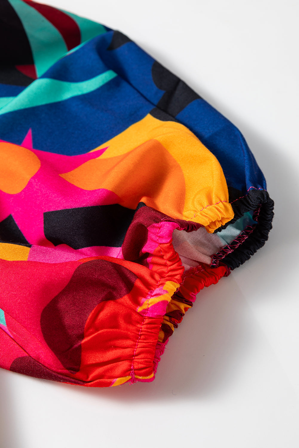 - This vibrant top features a bold and abstract print.