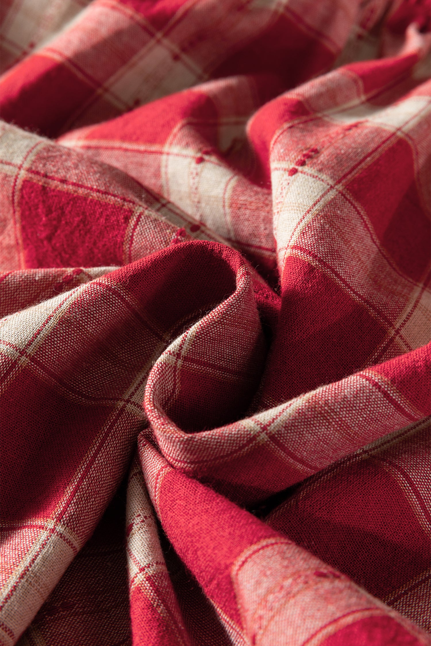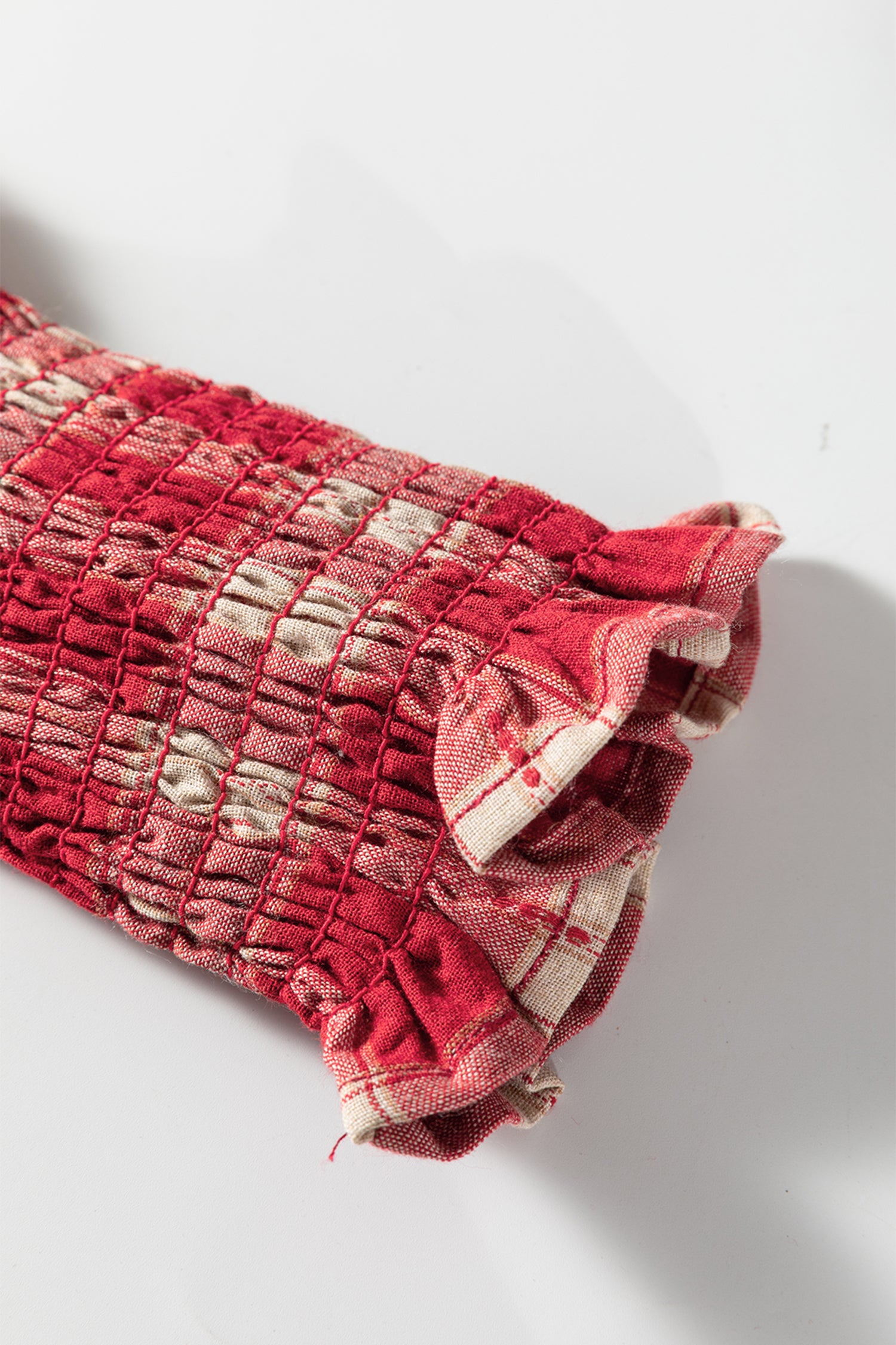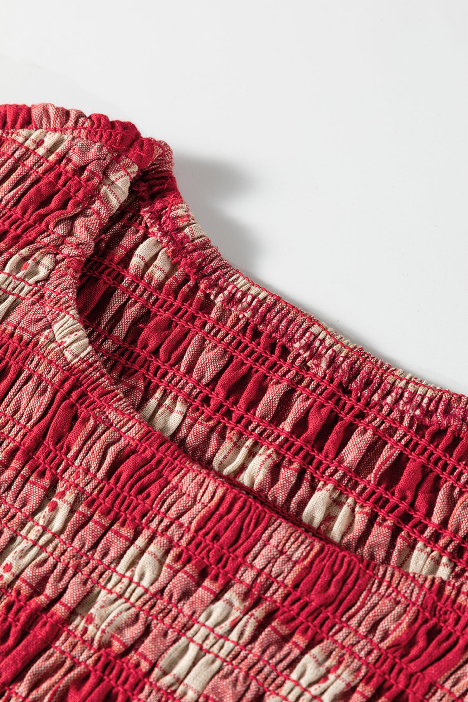 Red Plaid Print Smocked Puff Sleeve Mini Dress