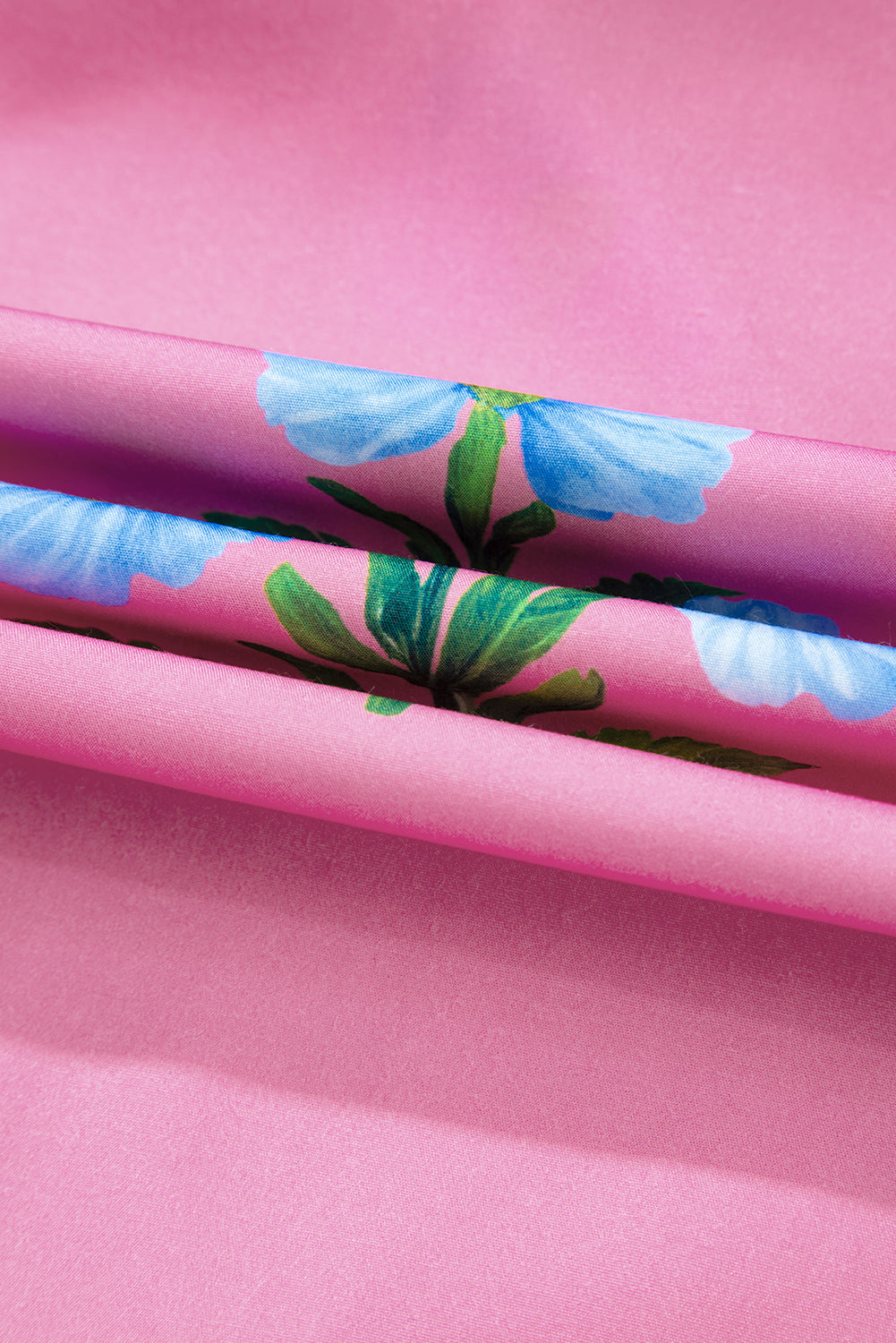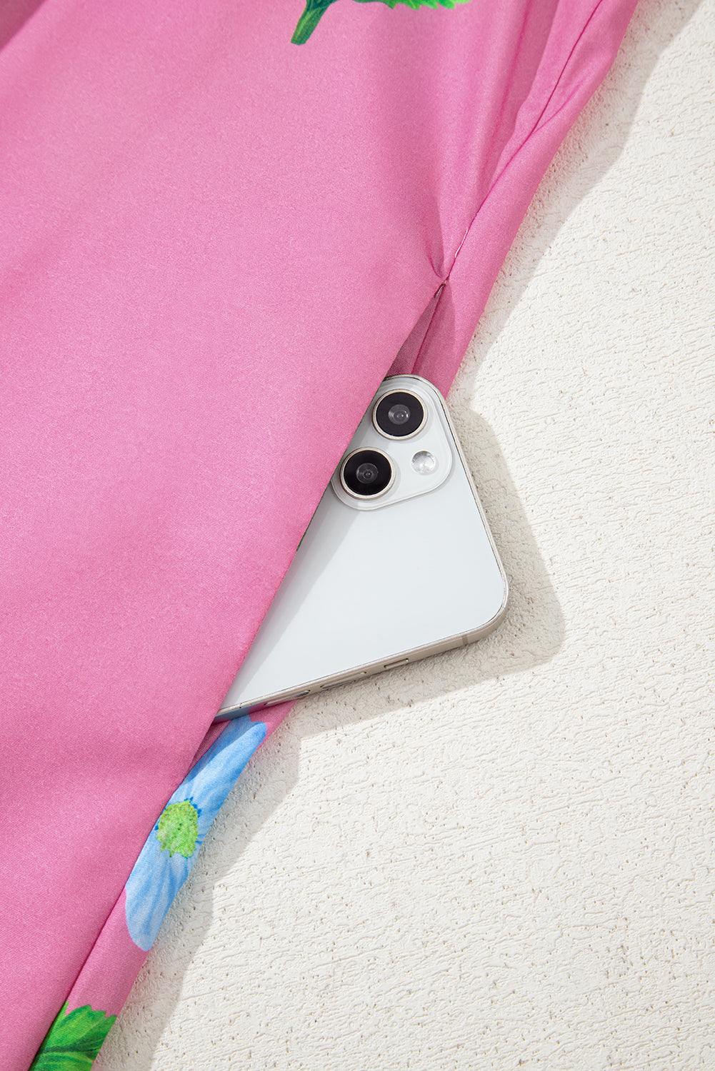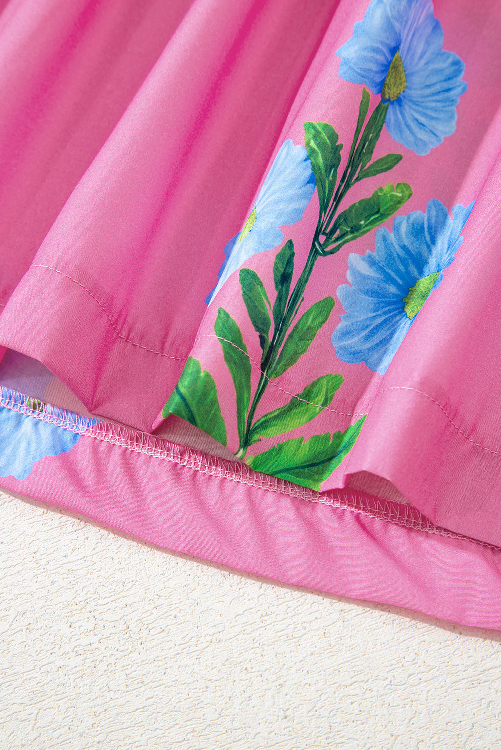 Rose Floral Short Sleeve Split Neck Loose Mini Dress