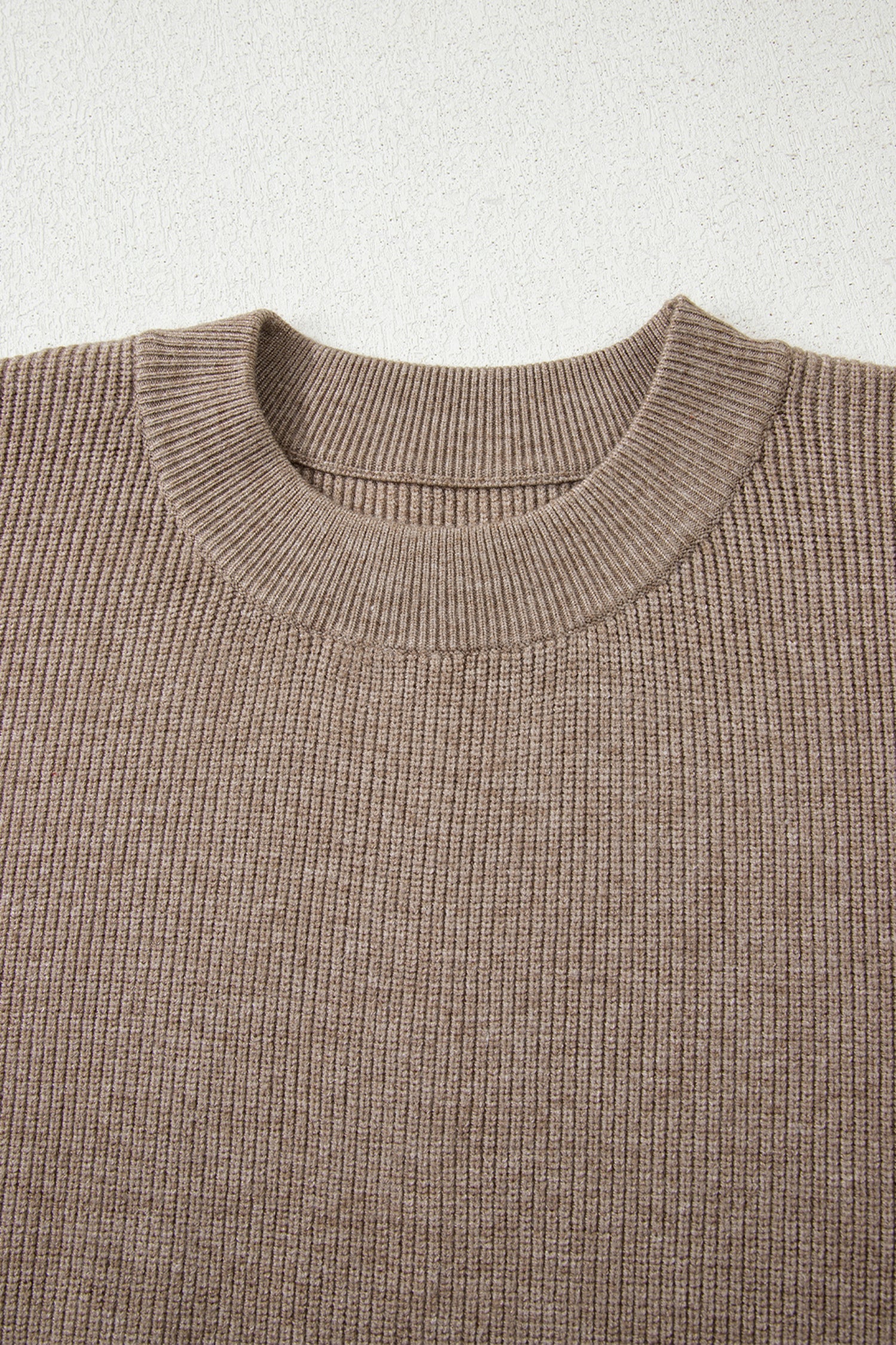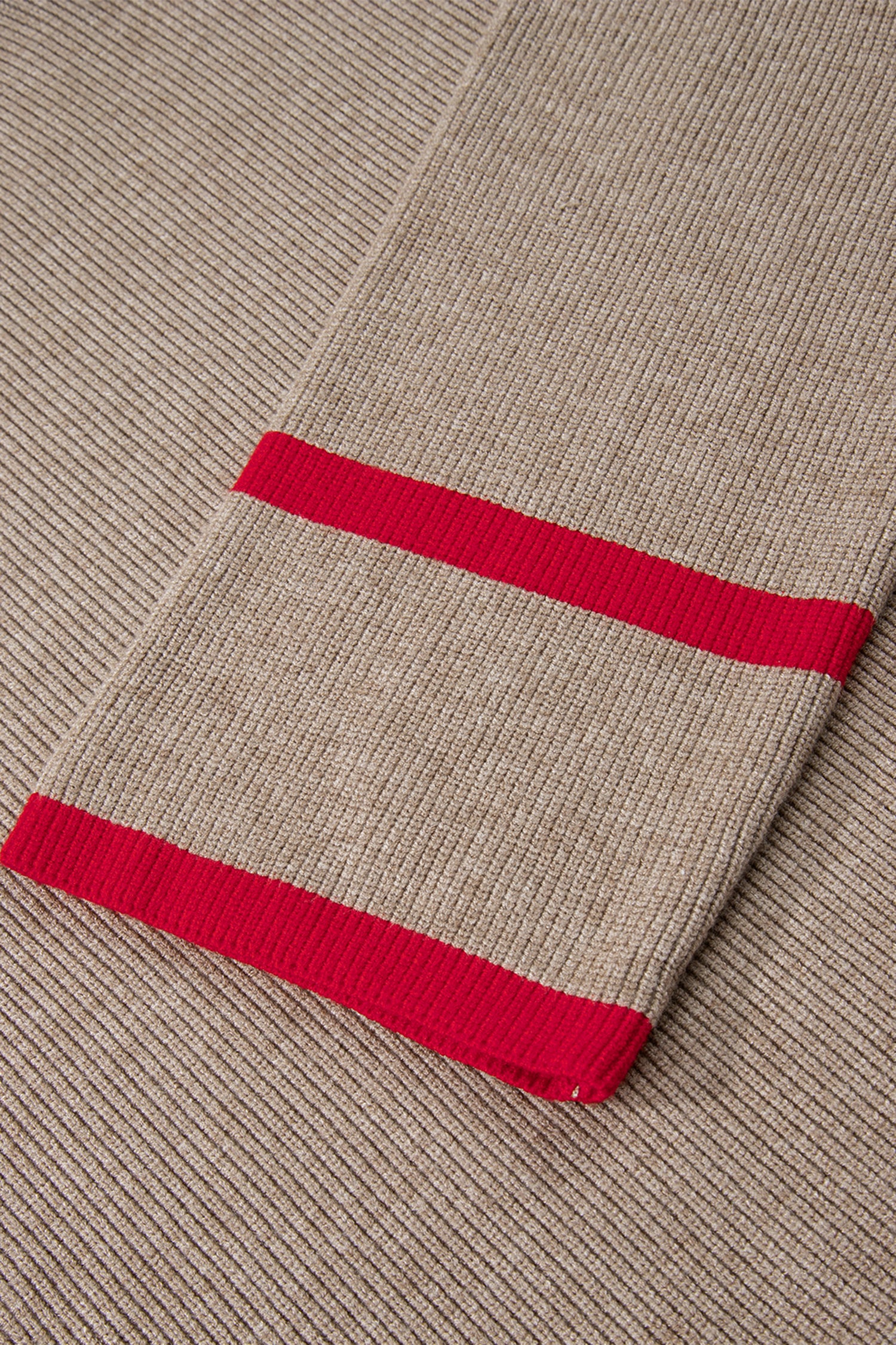 Simply Taupe Ribbed Knit Contrasted Stripe Detail Button Side Loose Sweater