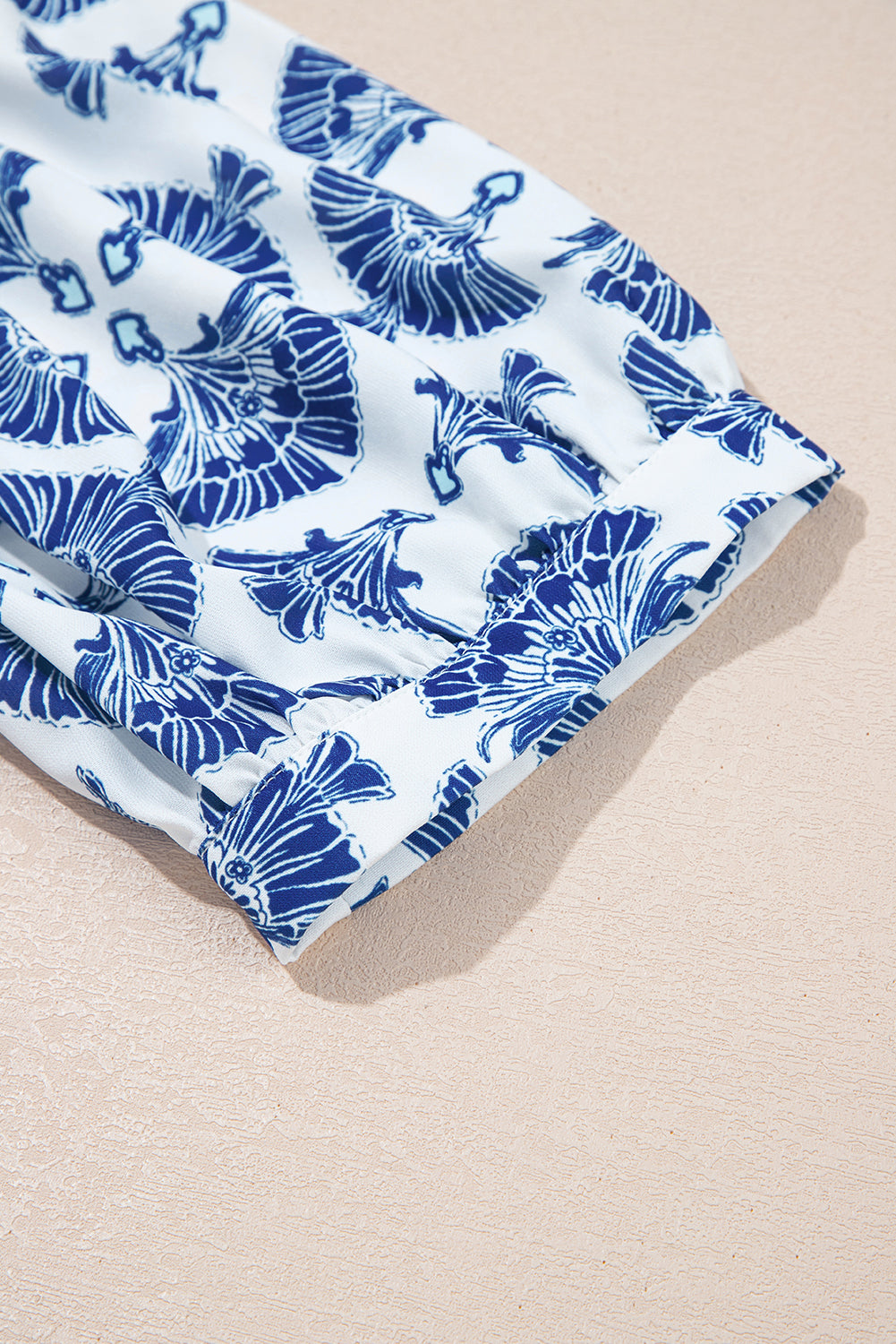 Sky Blue Geometric Print Tassel Drawstring V Neck Blouse
