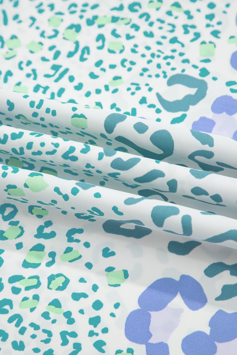 Sky Blue Leopard Layered Ruffle Short Sleeve Casual Blouse