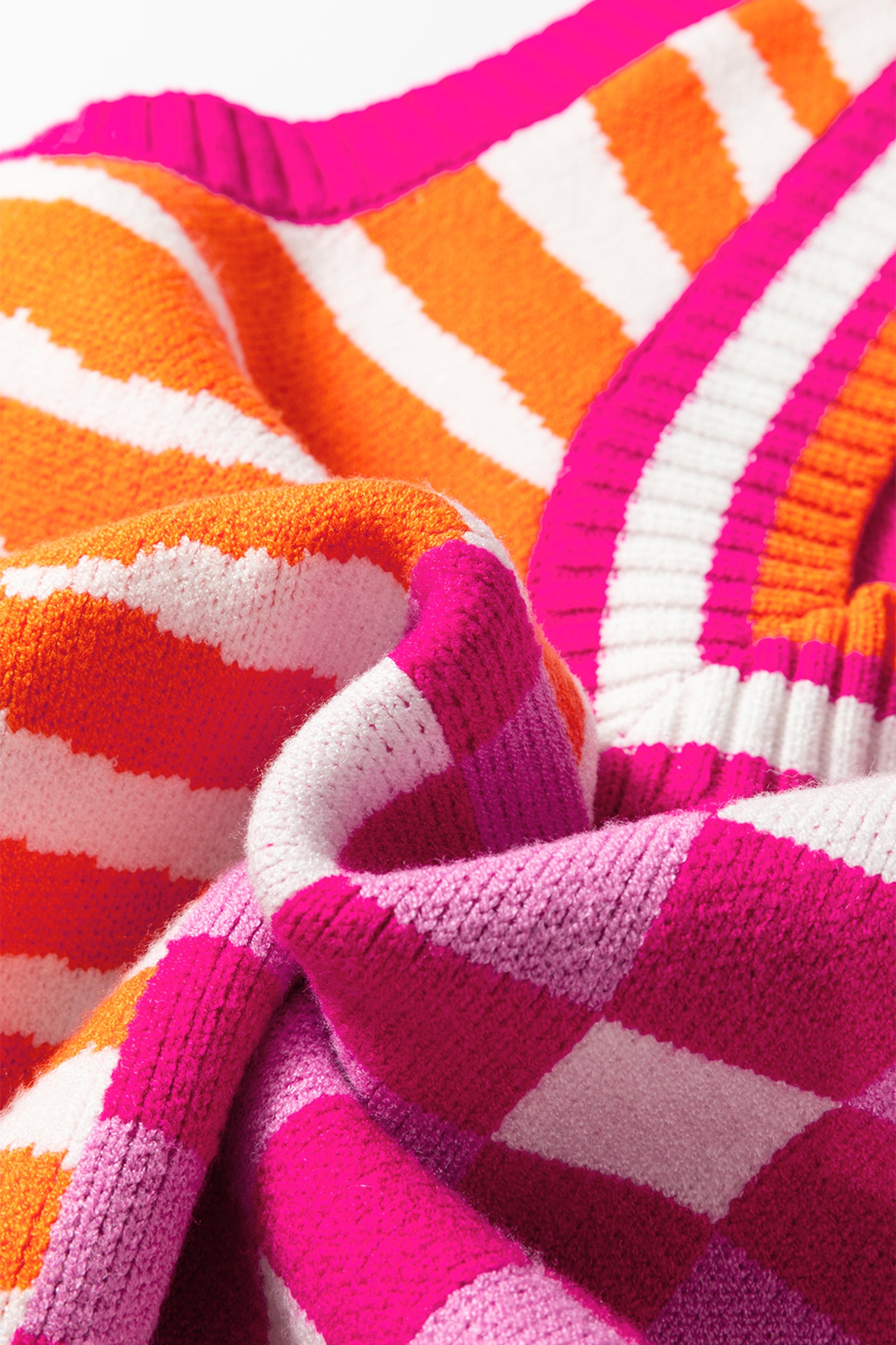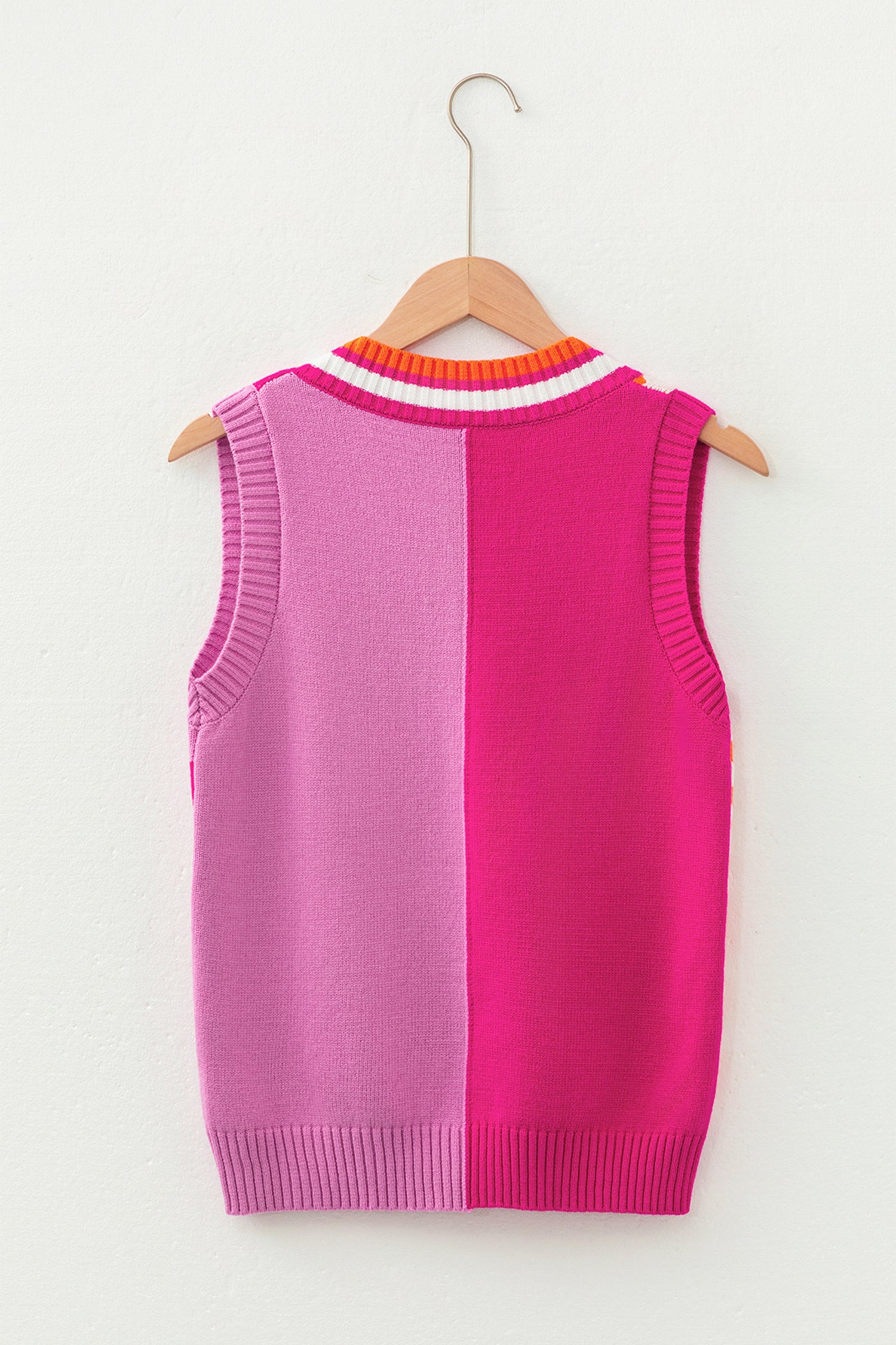 Yellow Striped Checkered Contrast Patchwork V Neck Sweater Vest