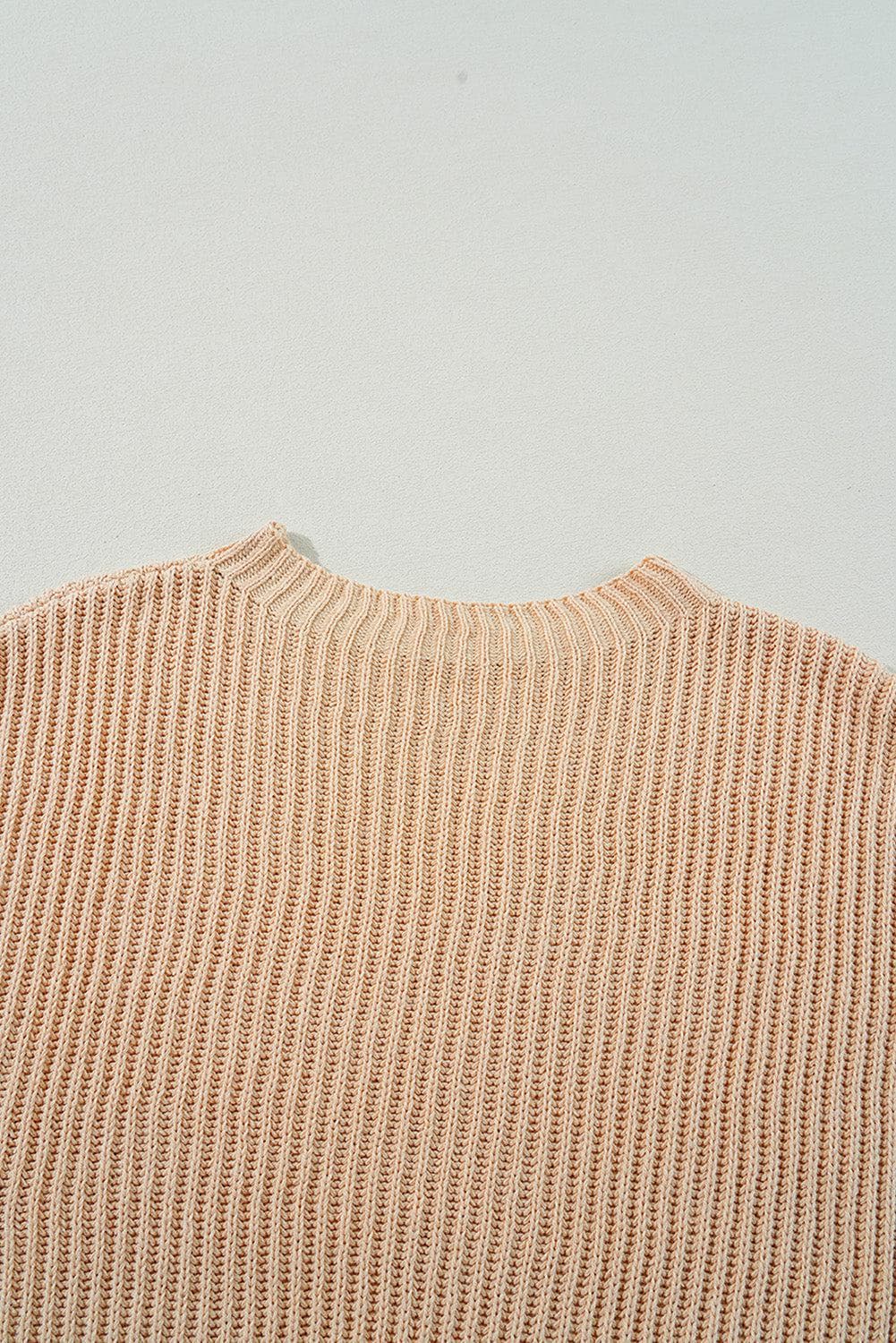 Apricot Cable Knit Drop Shoulder Side Slits Loose Sweater