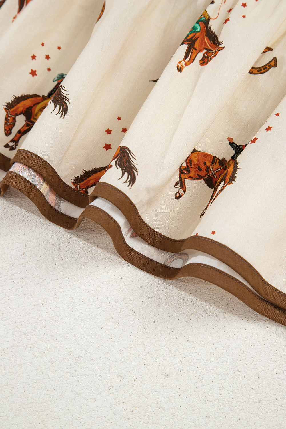 Apricot Cowboy Print Puff Sleeve Bowknot Peplum Blouse