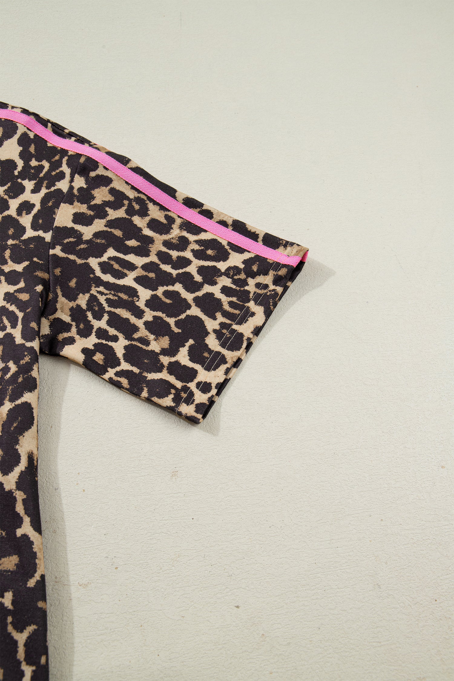 Apricot Leopard Print Contrast Varsity Striped Detail Loose T Shirt Dress