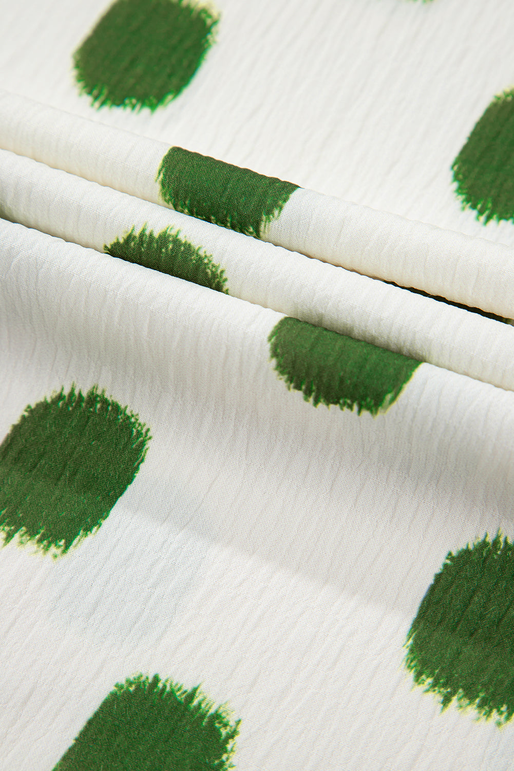 Apricot Polka Dot Print Shirred Yoke Notched Neck Balloon Sleeve Blouse