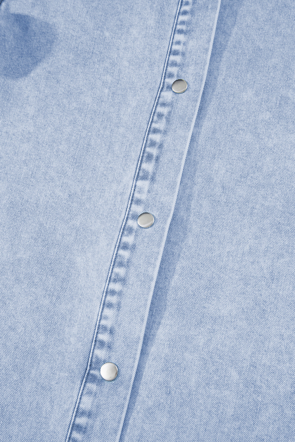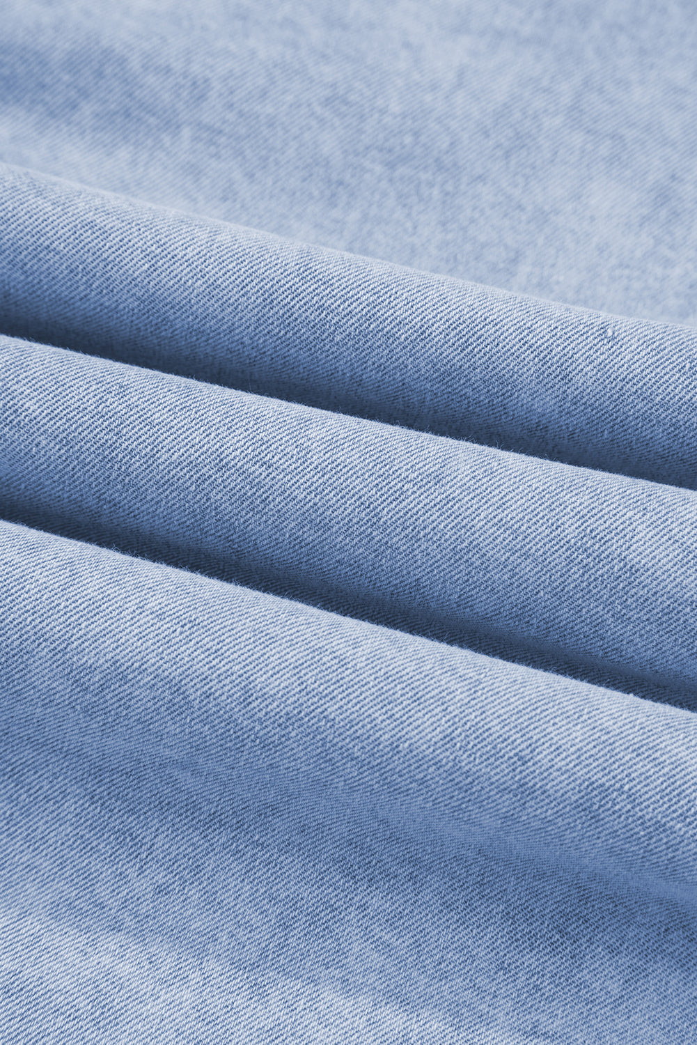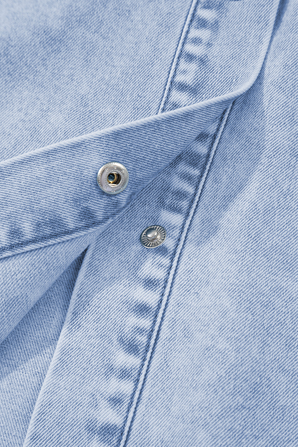 Beau Blue Double Ruffled Sleeves Buttoned A-line Collared Mini Denim Dress