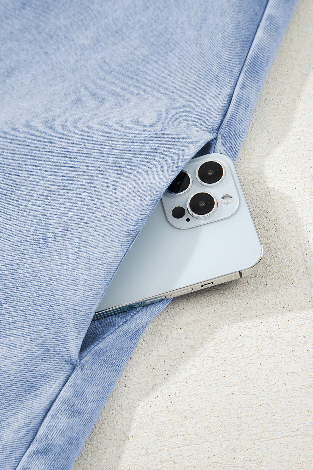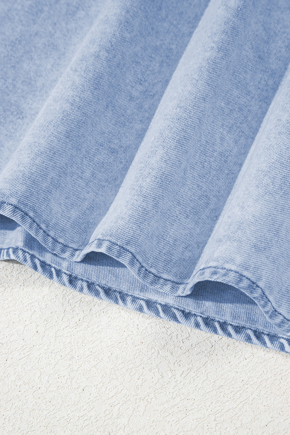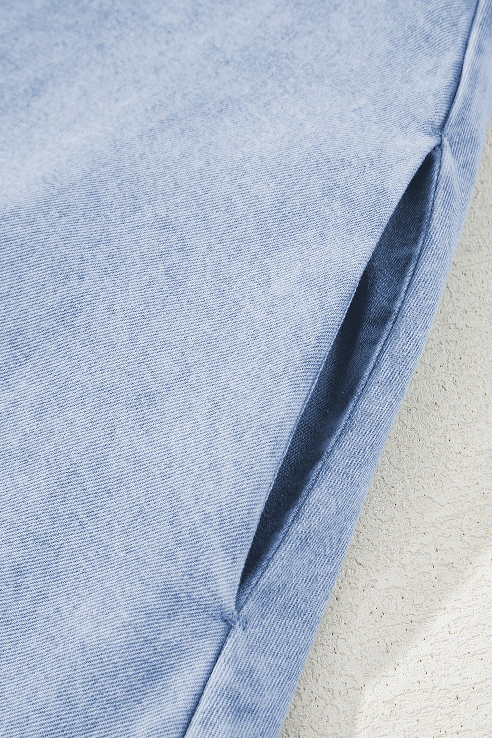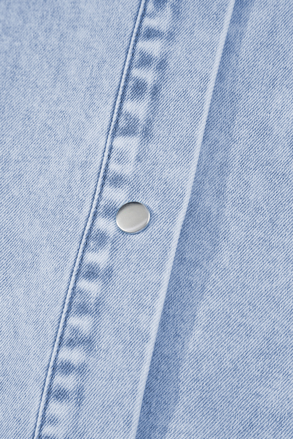 Beau Blue Double Ruffled Sleeves Buttoned A-line Collared Mini Denim Dress
