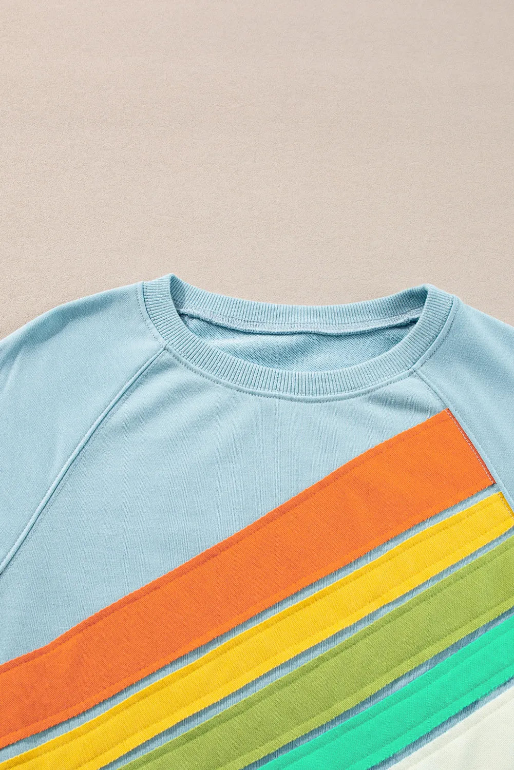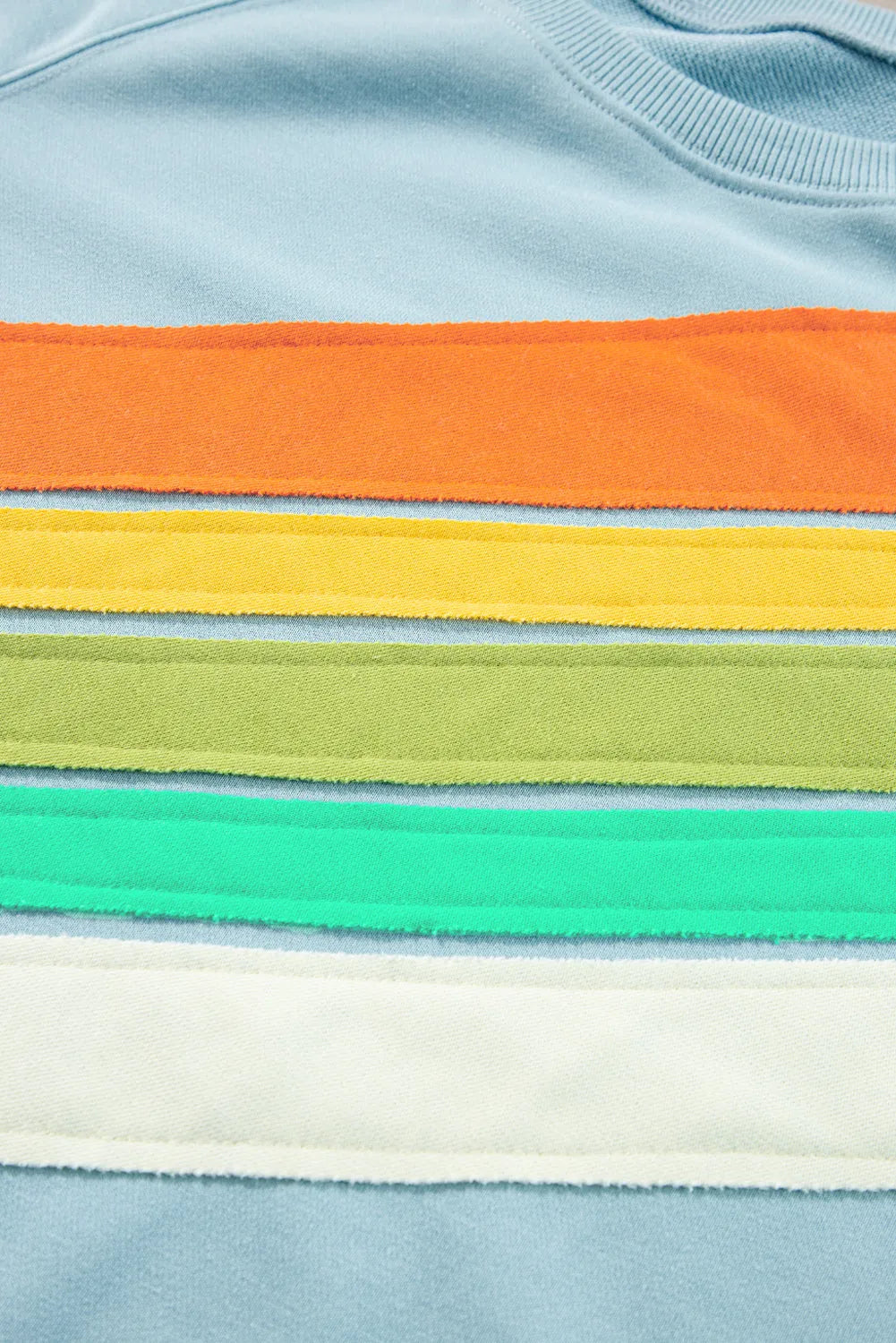 Beau Blue Rainbow Colorblock Striped Pullover Sweatshirt