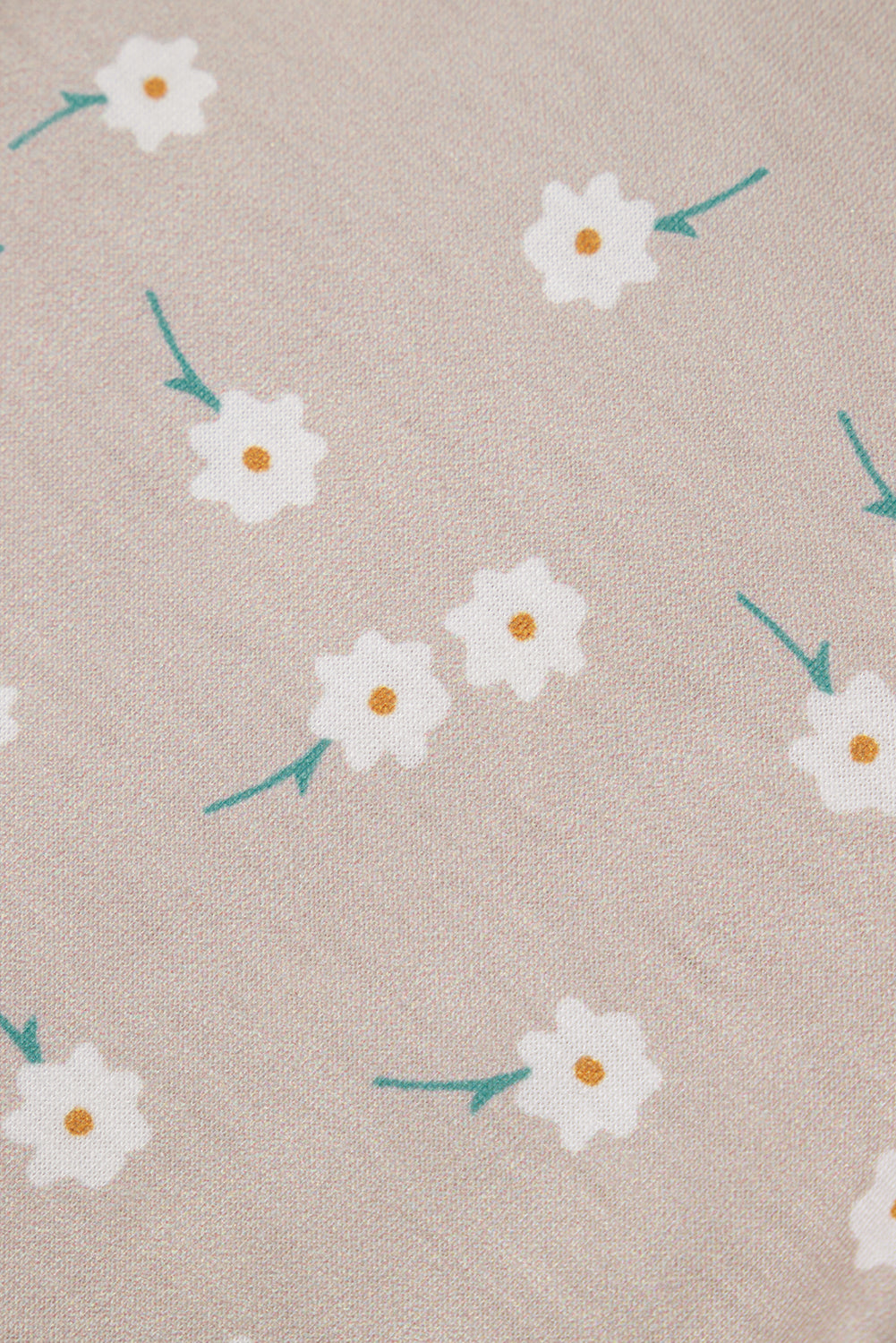 Beige Floral Print Color Block Raglan Sleeve T Shirt