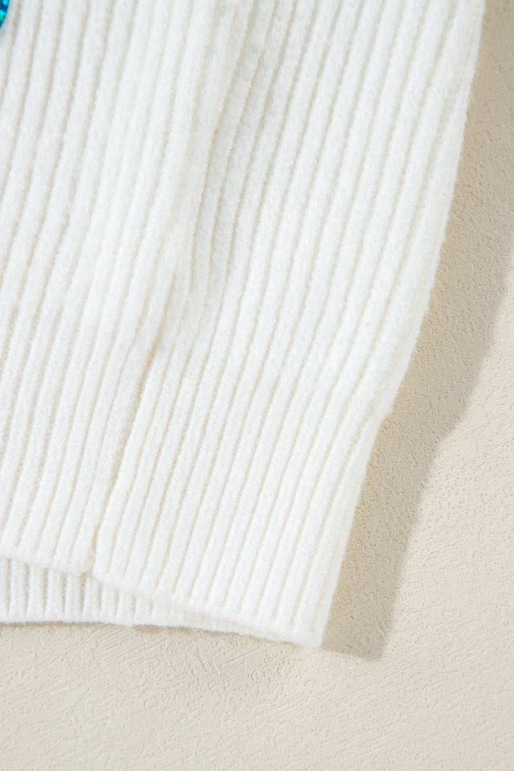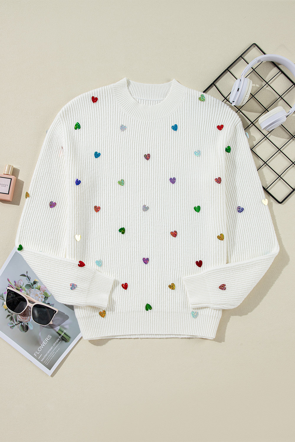 - This knit sweater is sparkling with eye-catching sequined heart pattern