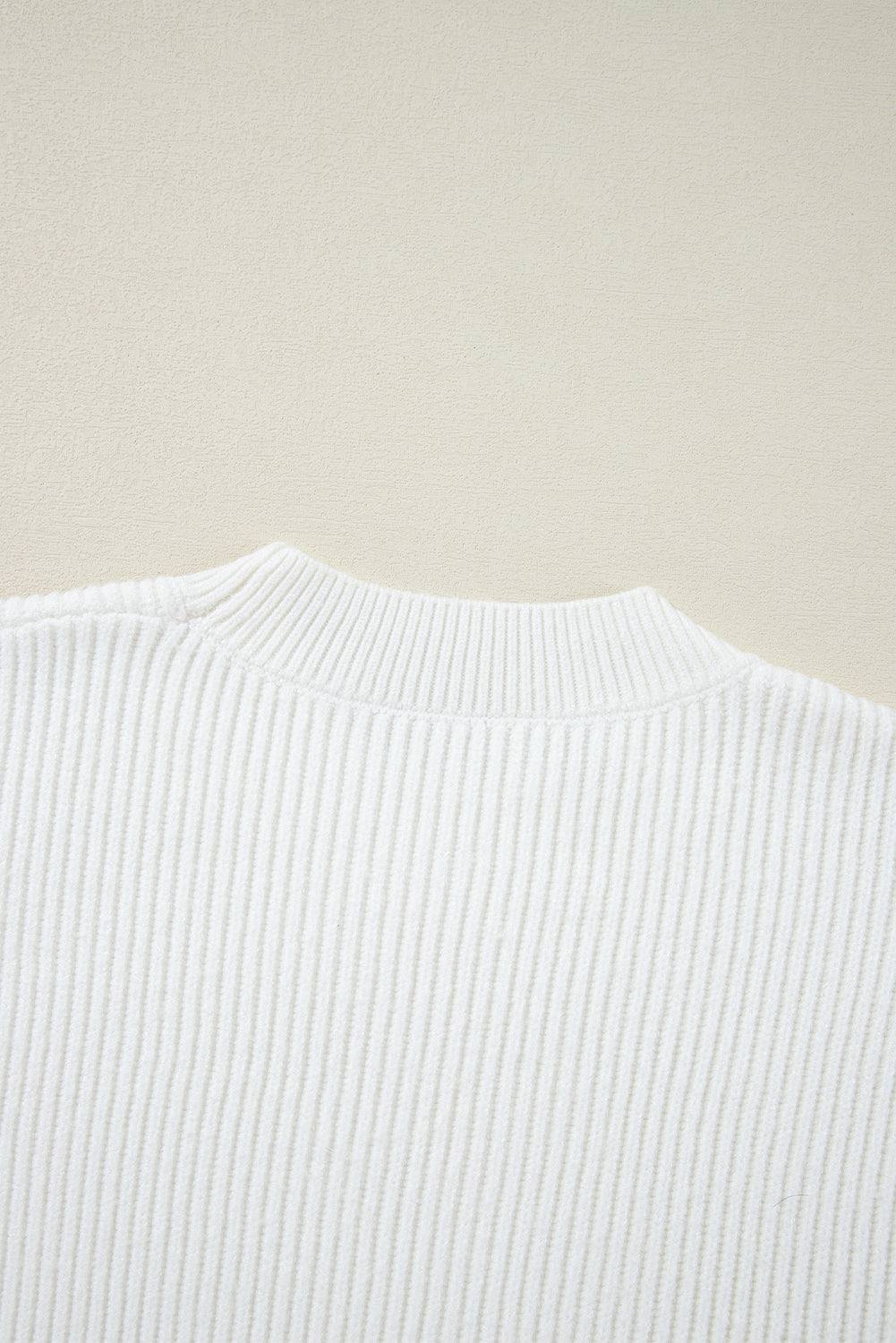 Beige Sequin Heart Shape Waffle Knit Round Neck Sweater
