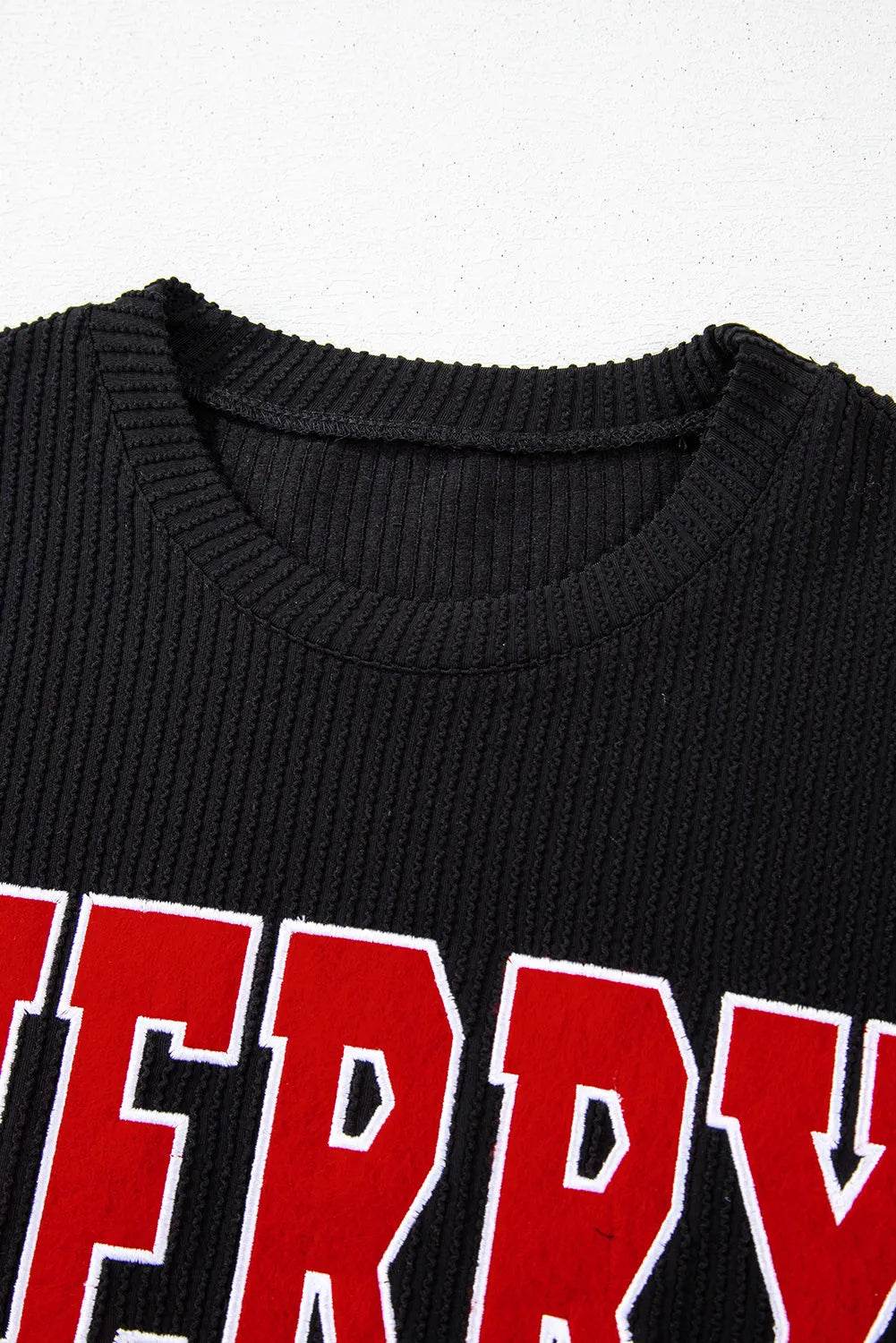 Black Corded MERRY Graphic Long Sleeve Top and Shorts Set