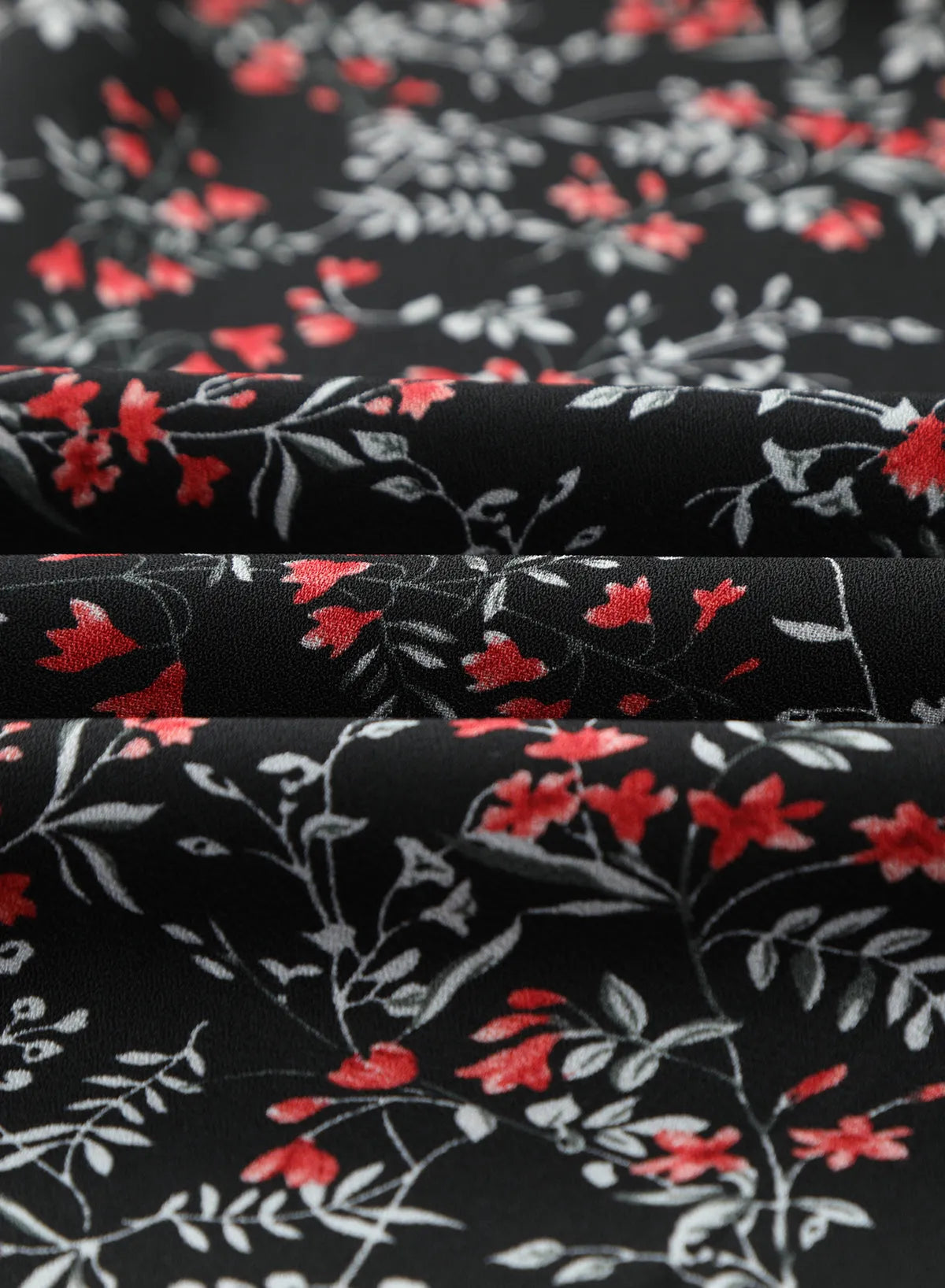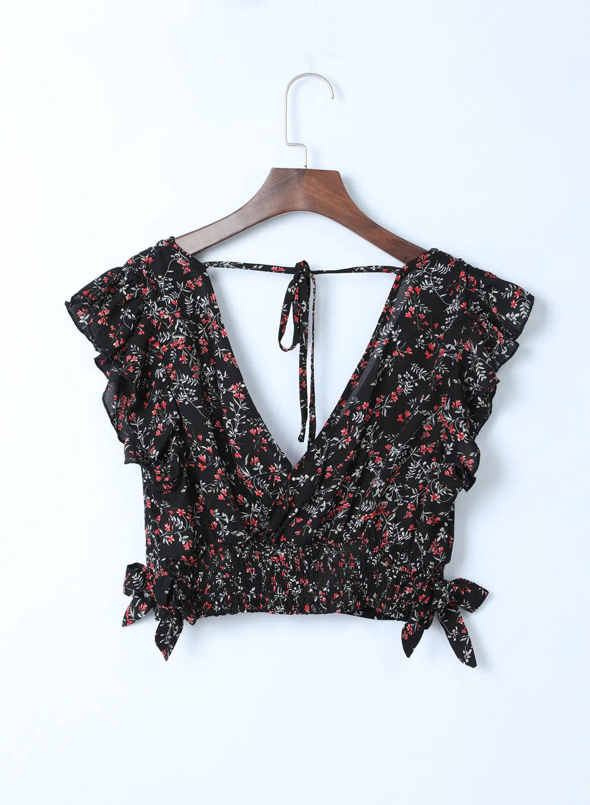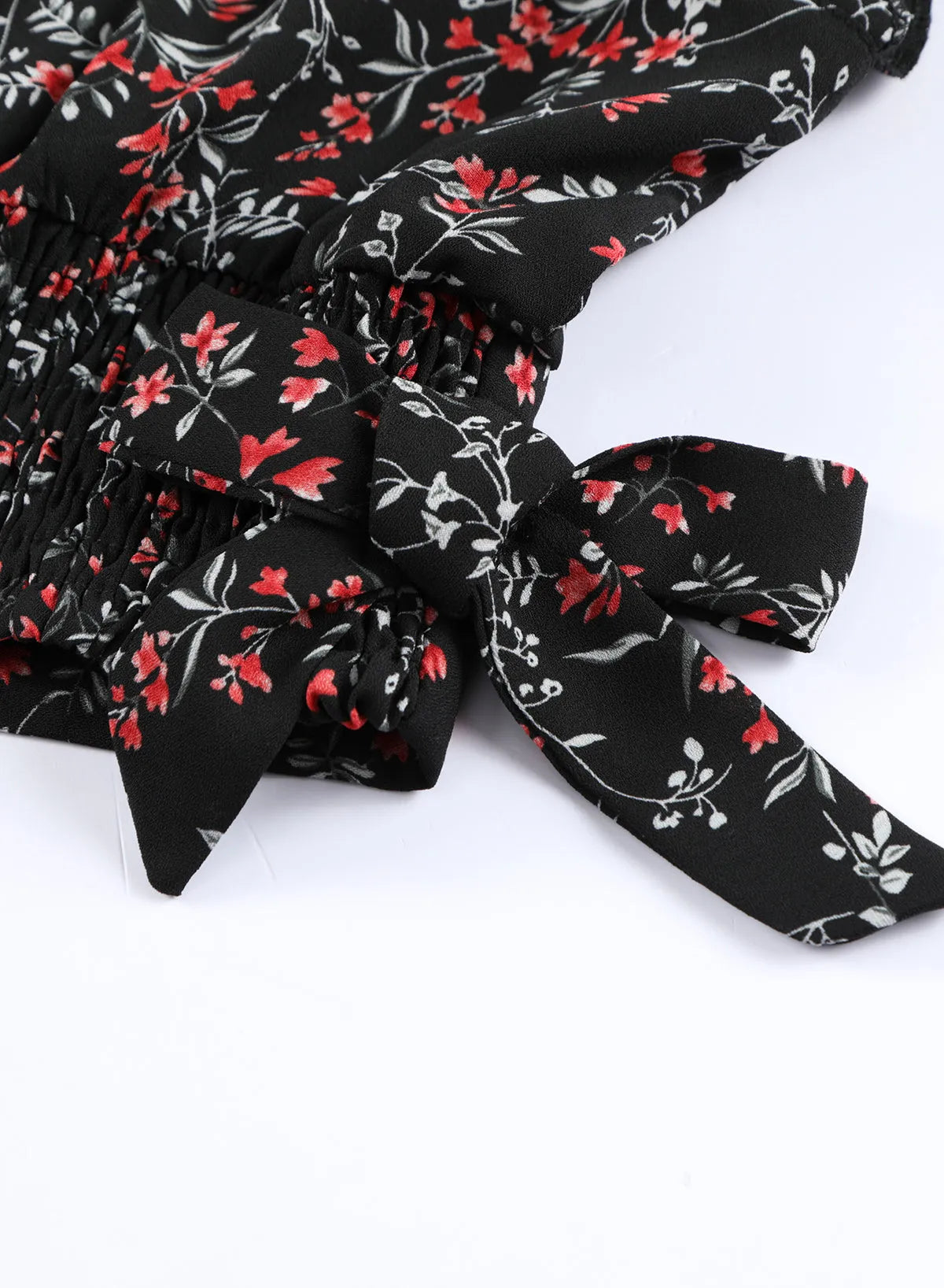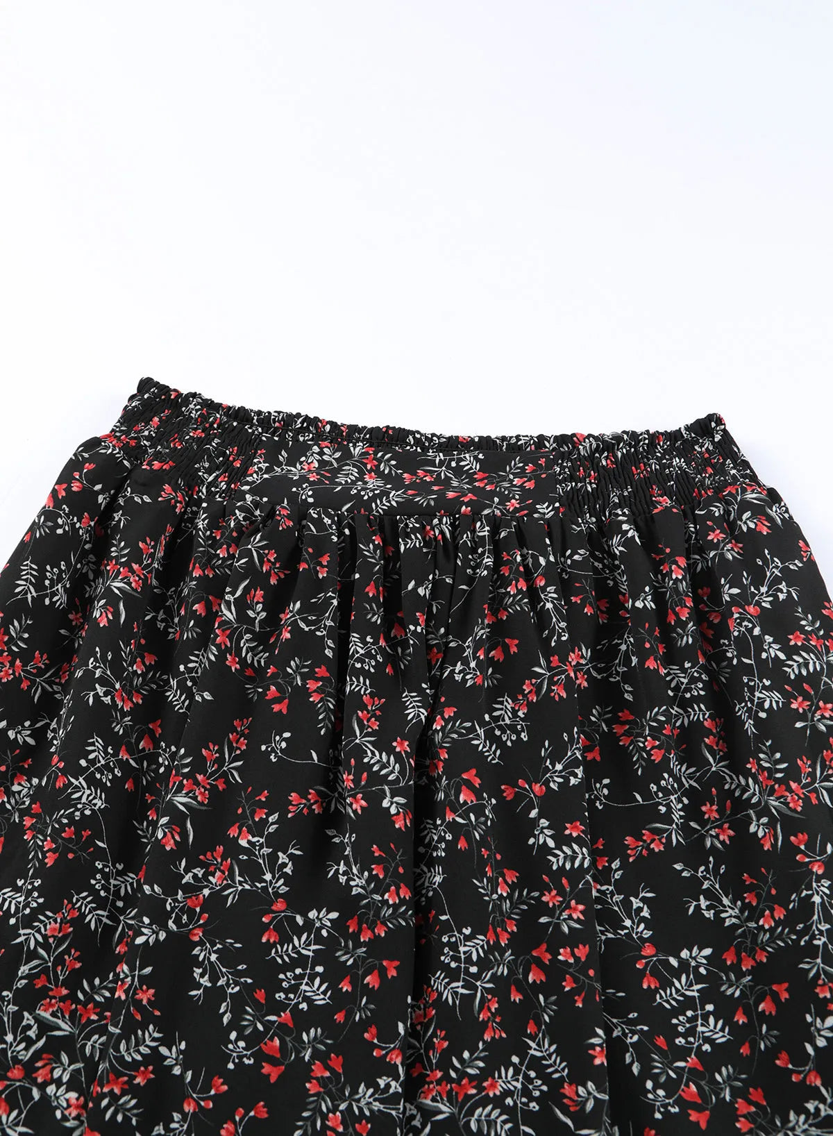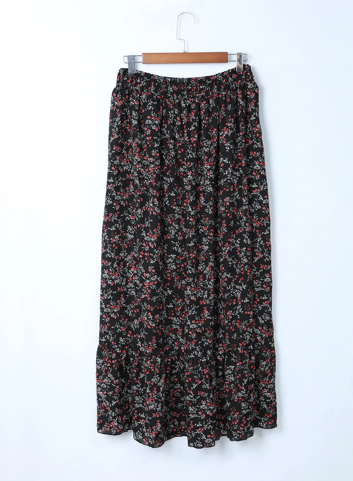 Black Multicolor Floral Ruffled Crop Top and Maxi Skirt Set