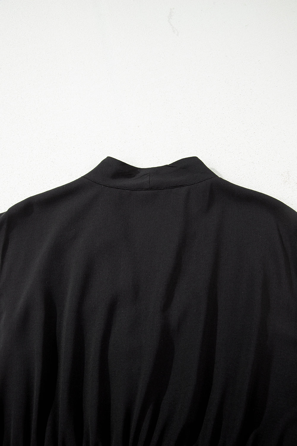 Black Sleeveless Zipped Front V Neck Shirred Waist Maxi Dress