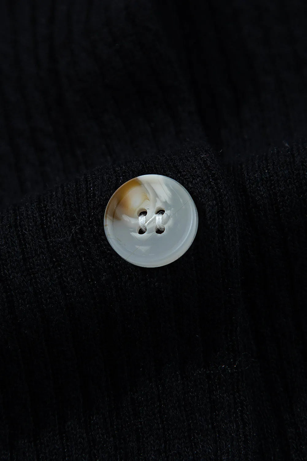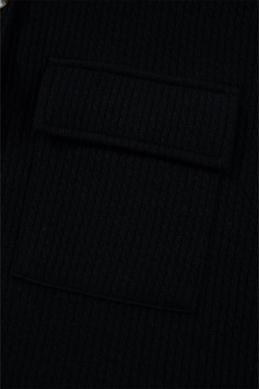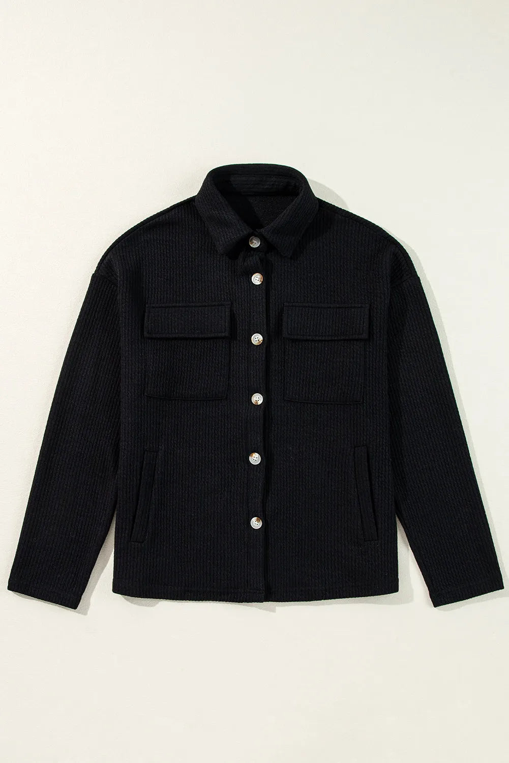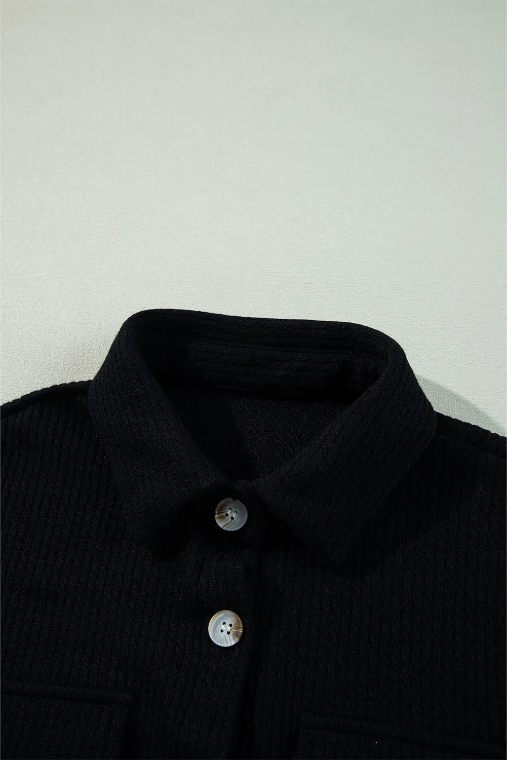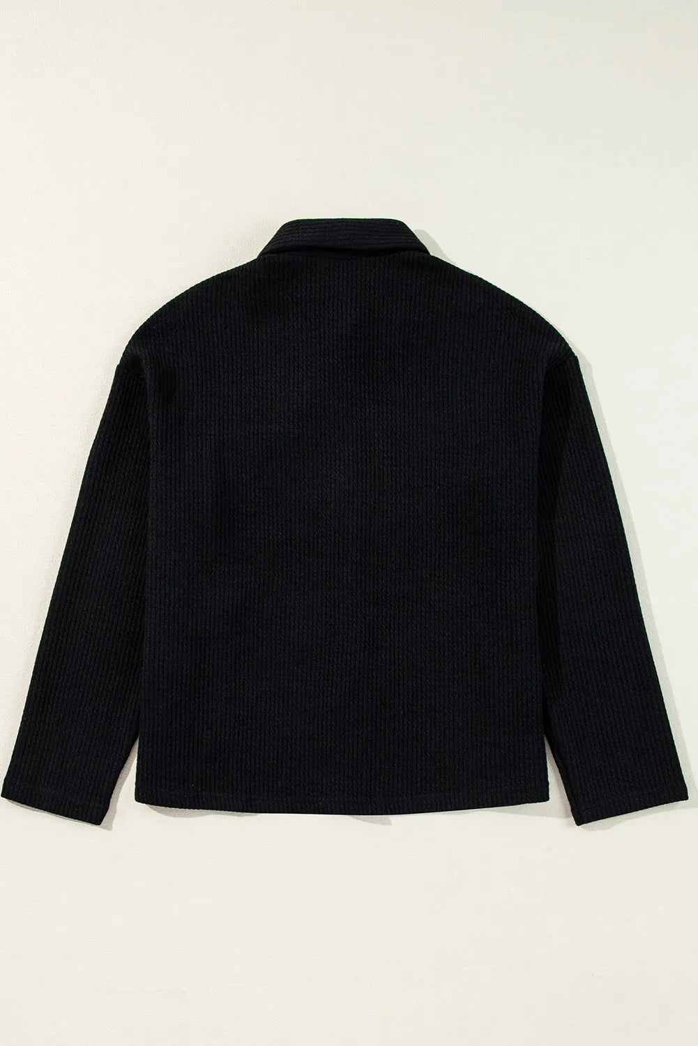 Black Solid Color Corduroy Buttoned Long Sleeve Shacket
