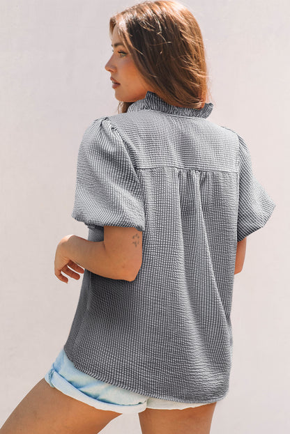 The short bubble sleeves makes this summer shirt with ultra feminine charm.