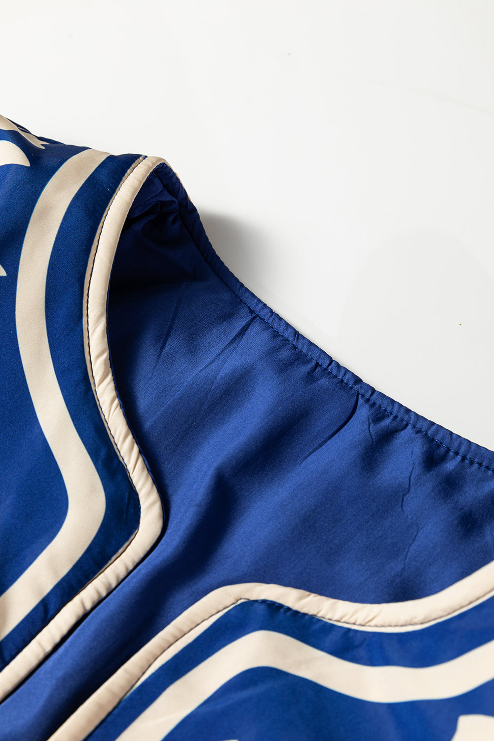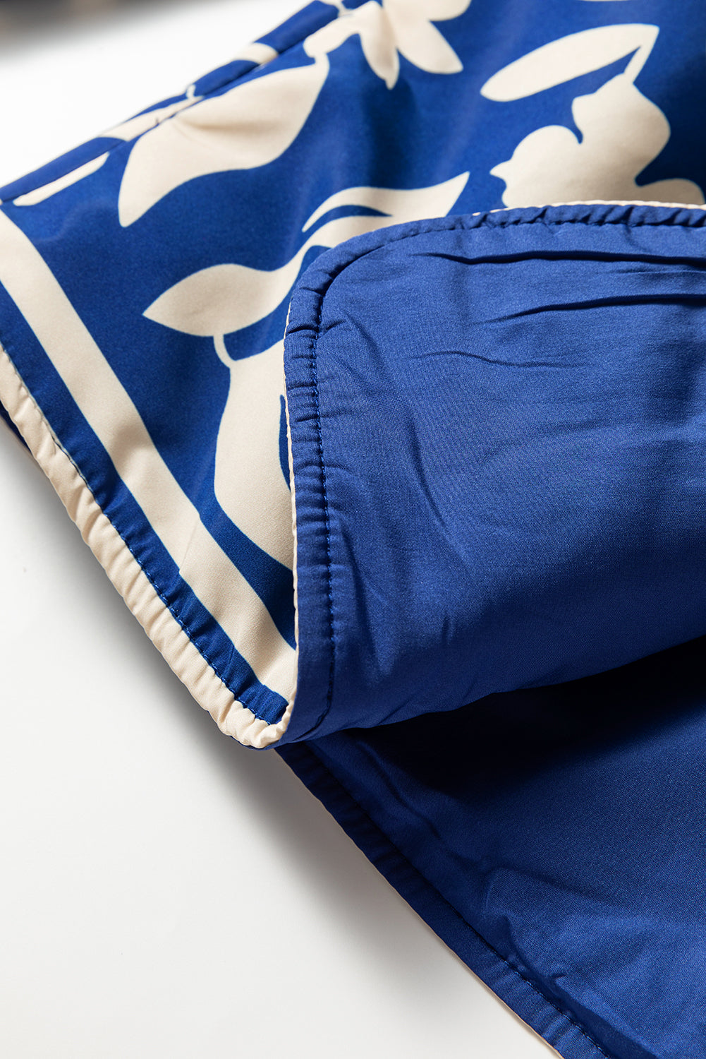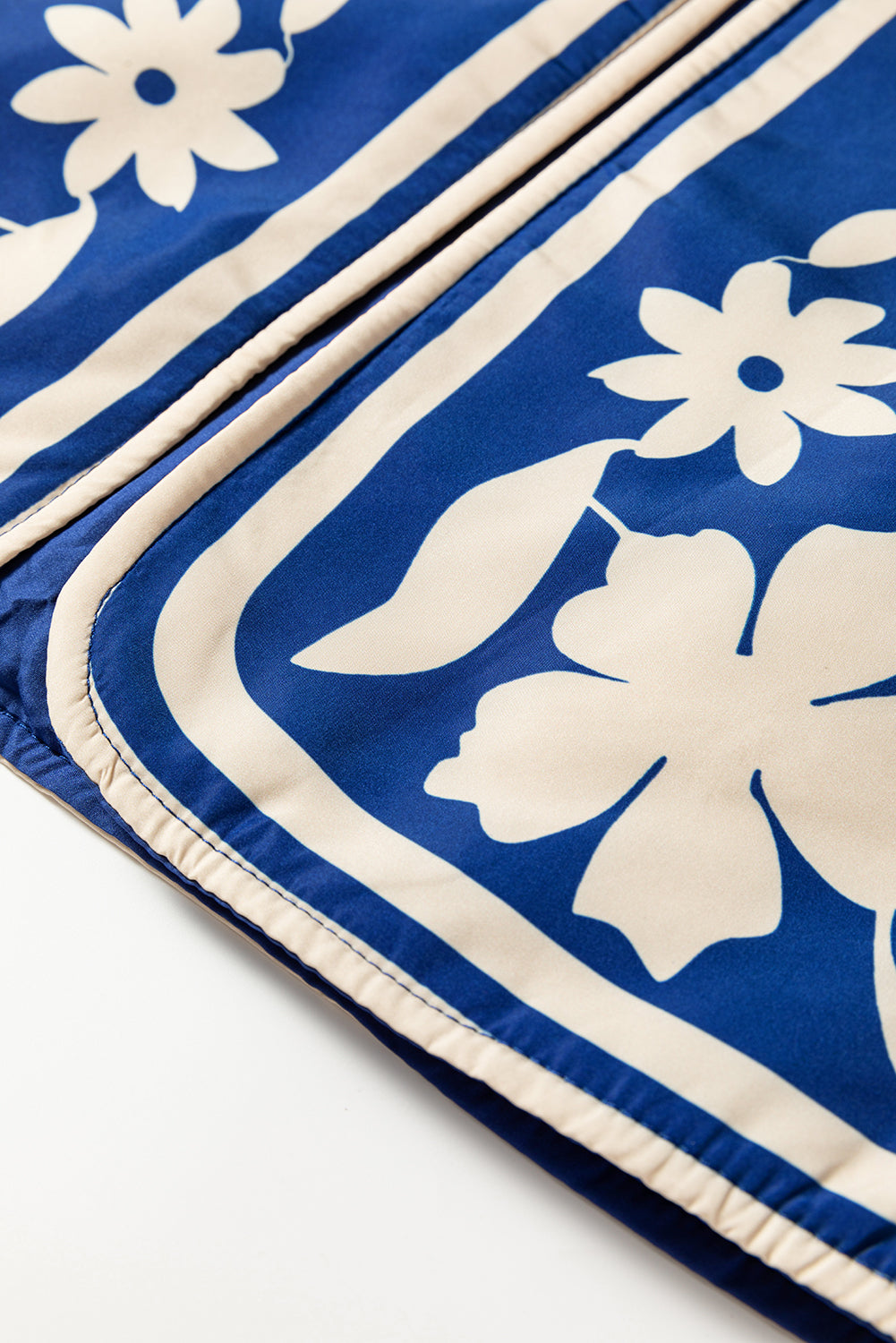 - This women’s jacket is elegant with a blue white floral silhouette.