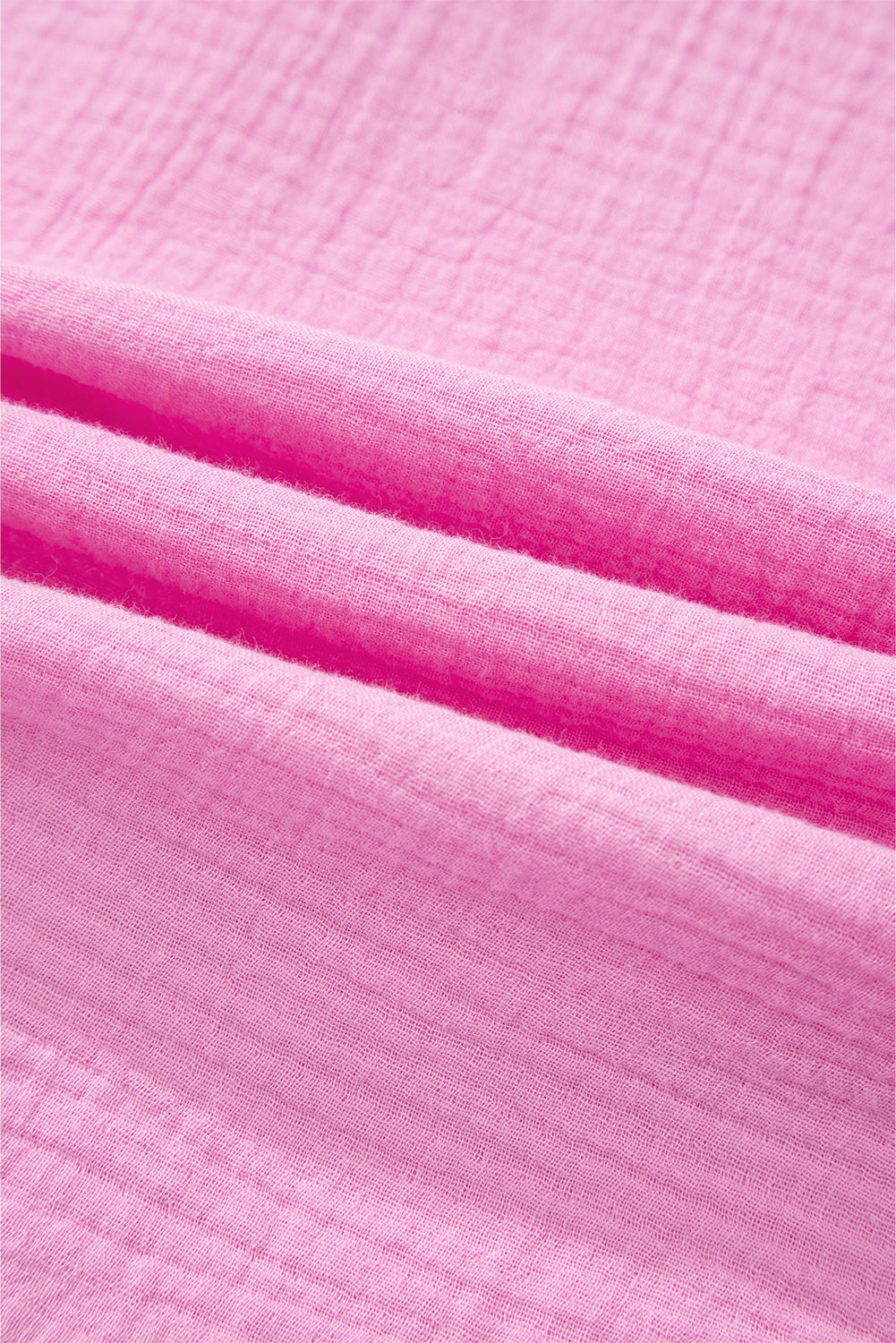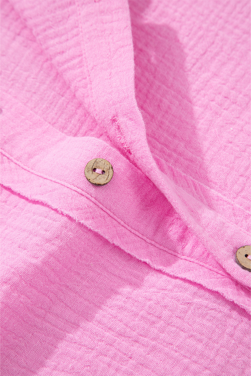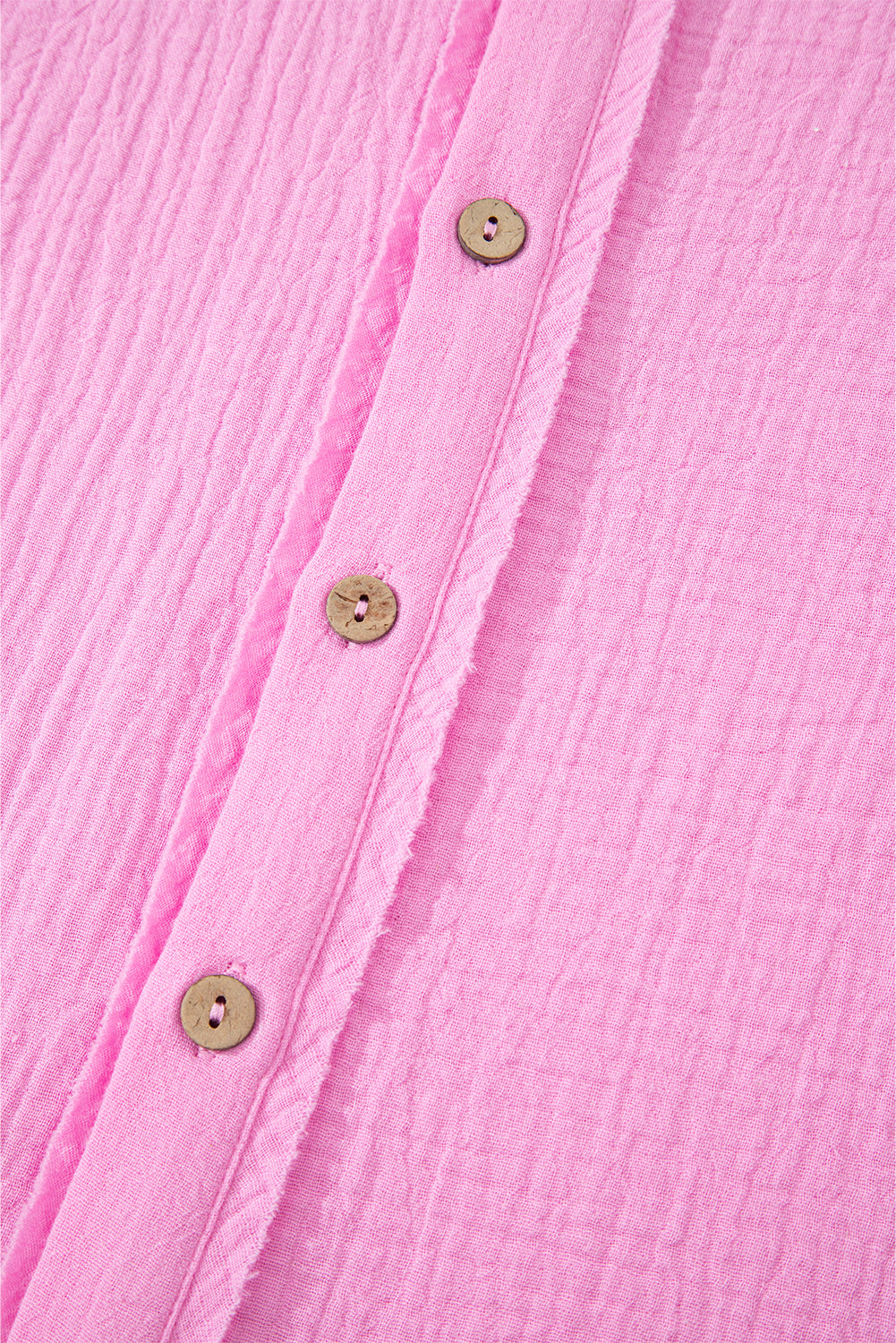 Bonbon Mineral Wash Textured Ruffle Trim Short Sleeve Shirt
