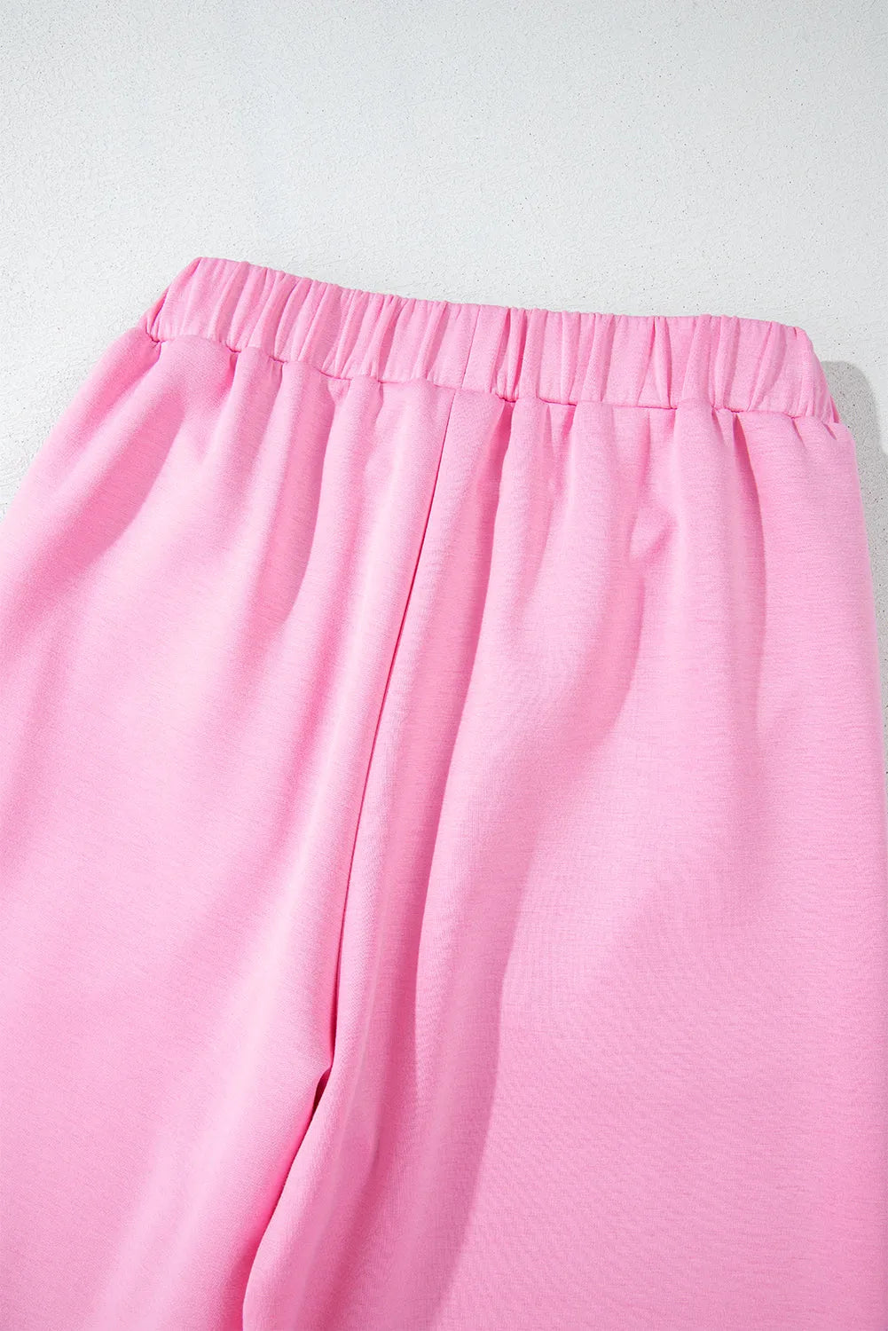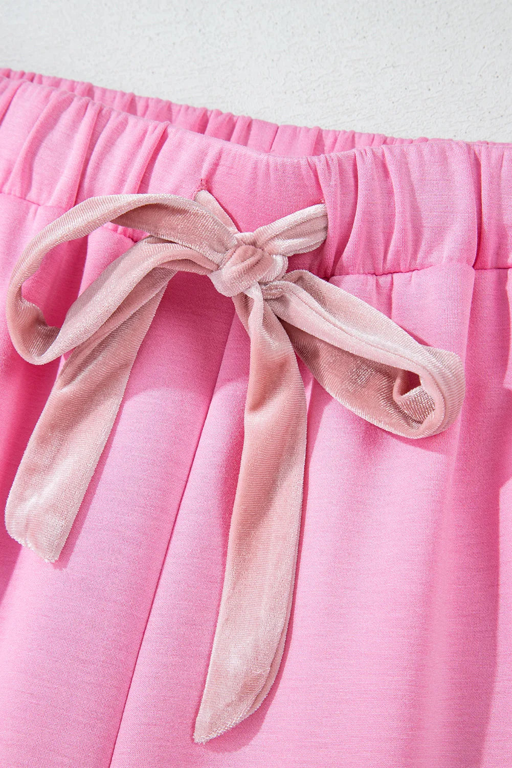 Bonbon Solid Color Drawstring Long Sleeve Top and Pants Set