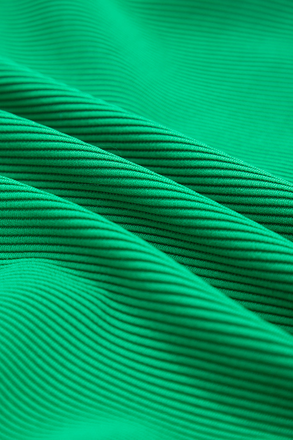 Bright Green Textured Short Sleeve Half Zip Drawstring Waist Romper