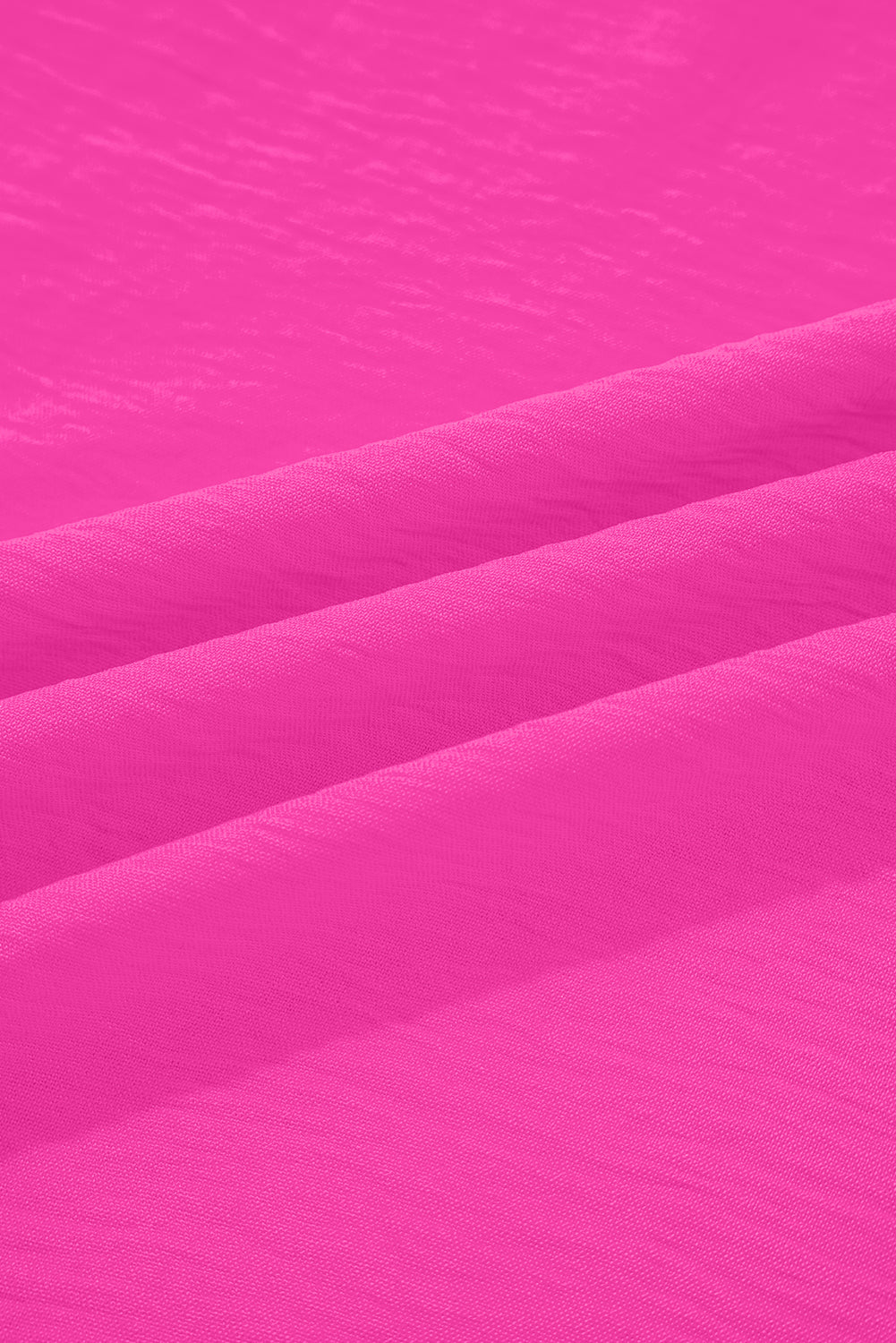 Bright Pink Frilled V Neckline Bracelet Sleeve Crinkled Blouse