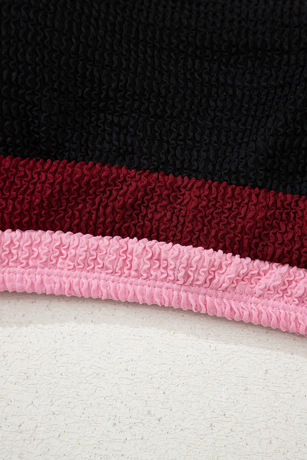 Burgundy Color Block High Waisted Sexy Bikini Set