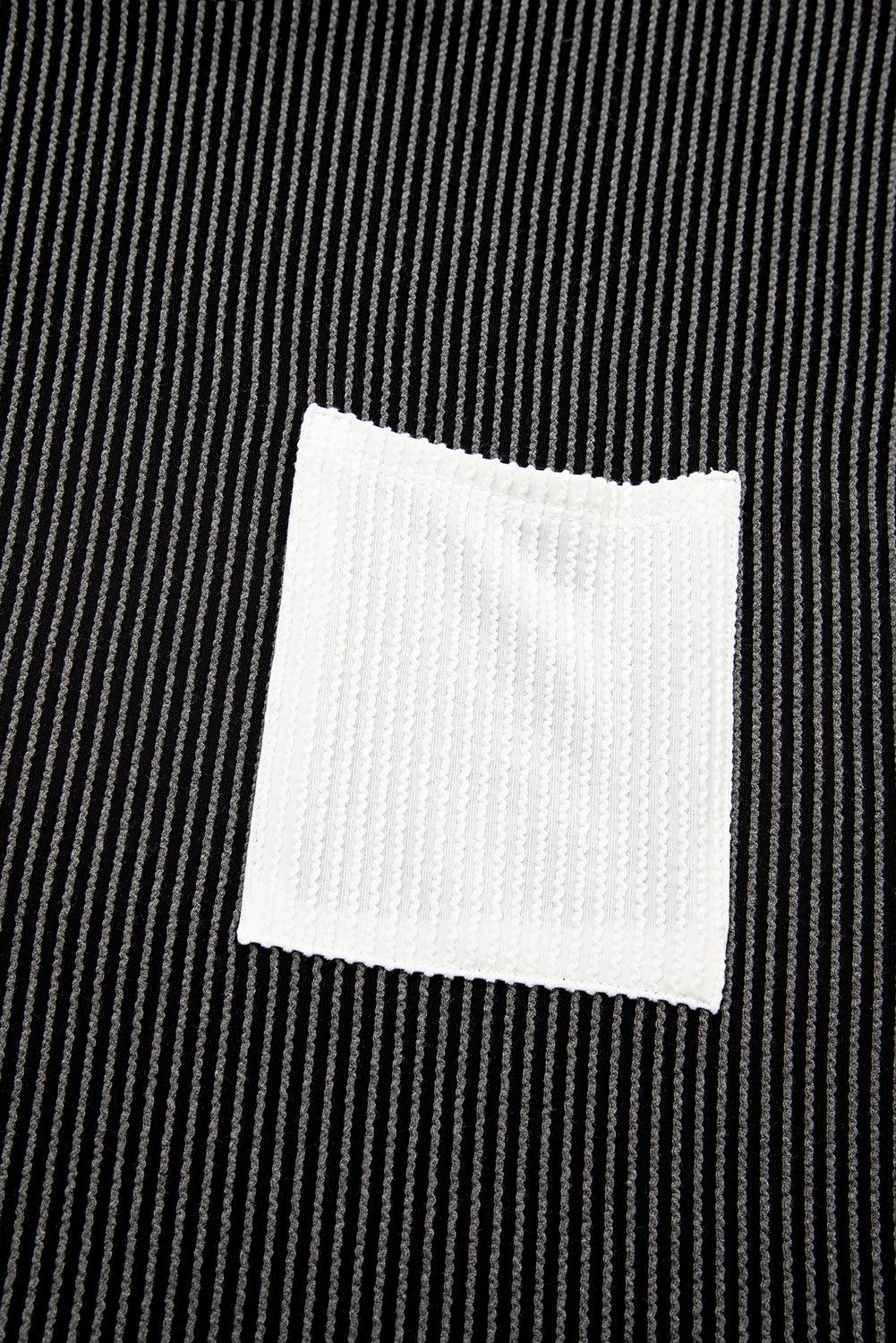 Carbon Grey Corded Knit Color Block Pocketed Crew Neck T Shirt